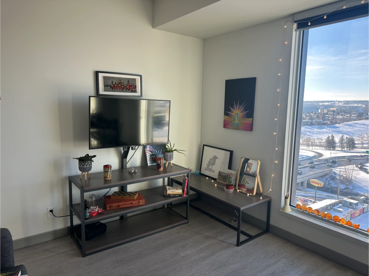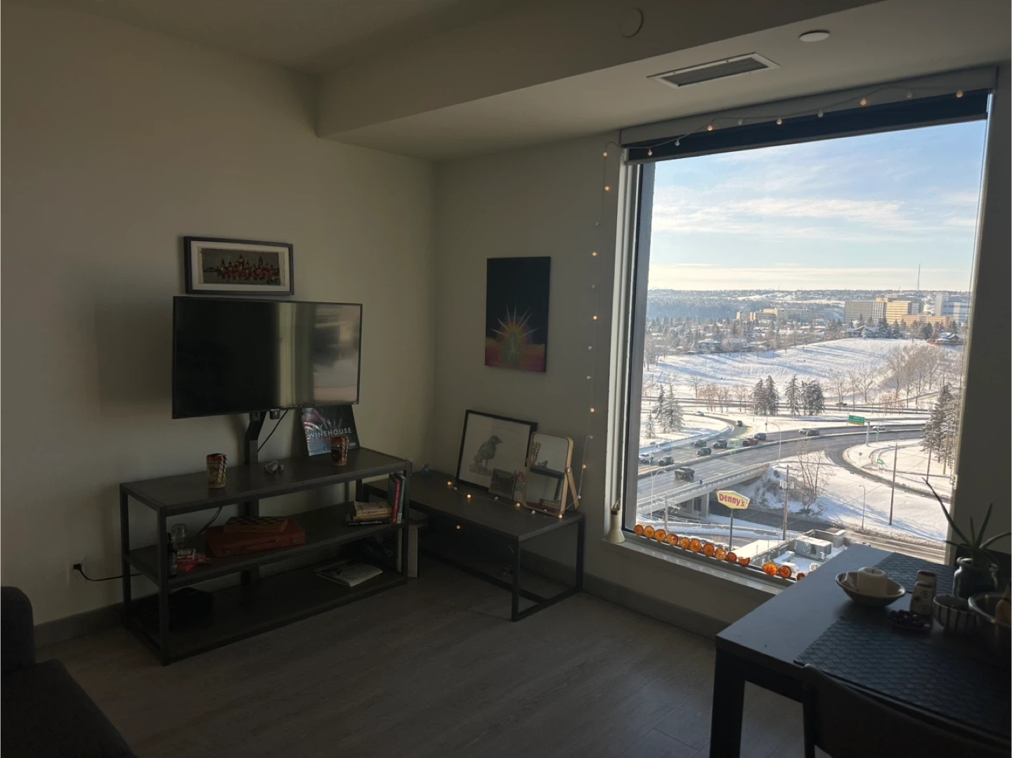 Enjoy beautiful view of the mountains & McMahon stadium during sunrise and sunset from the living room window on the 11th floor