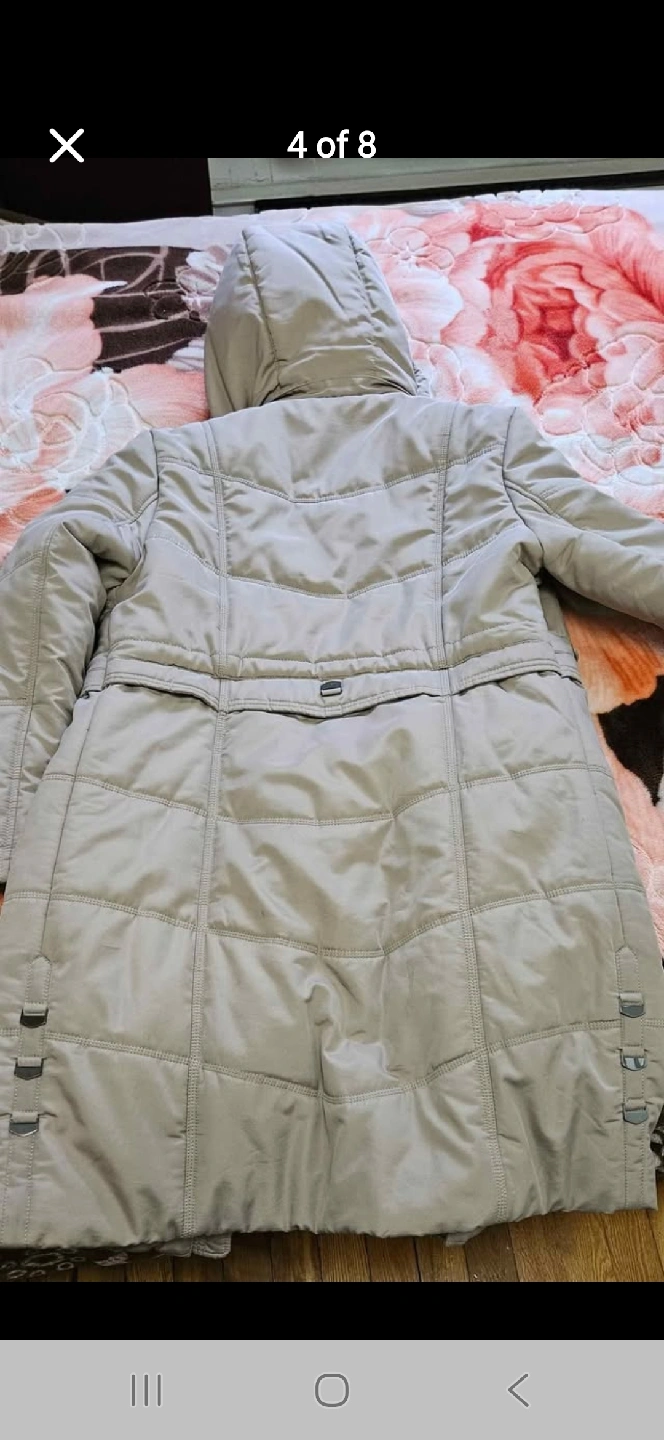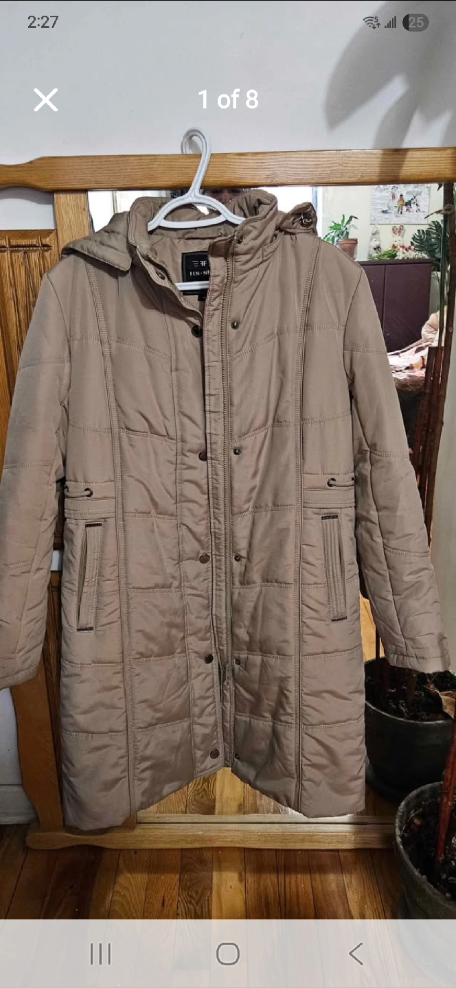 Cozy Fen Nelli puffer coat in a neutral colour! It's a size 8 and perfect for staying warm during the colder months. Ready for a new home!