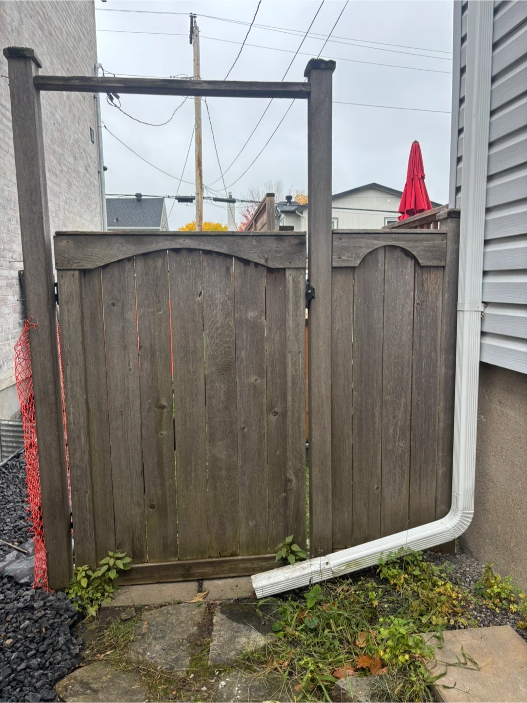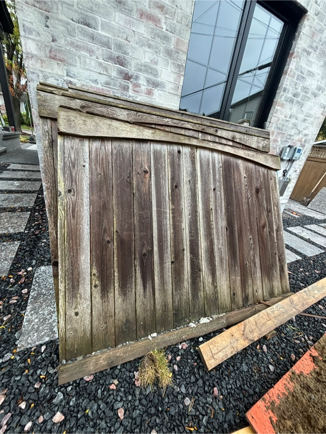 218 weathered fence panels plus gate . Pick up in westboro . 6’high approximately 7.5’ long