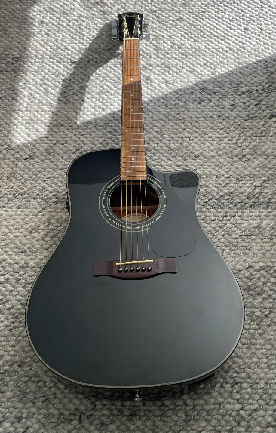 Used Fender acoustic guitar in great condition. This guitar is perfect for both beginners and experienced players looking for a reliable instrument with great sound. Here are some details: * Brand: Fender * Model: CD-110CE BLK * Type: Acoustic-electric * Pickup: Fishman * Colour: Black * Body Style: Dreadnought with a single cutaway * Top: Laminated Spruce * Back and Sides: Laminated Nato * Neck: Nato * Fretboard: Rosewood * Electronics: Fishman or Fender AGE-TN onboard preamp with built-in tuner * Finish: Gloss polyurethane * Bracing: Scalloped X bracing Key features * Acoustic-electric: Includes a Fishman pickup and preamp for plugging into an amplifier. * Cutaway design: Provides easier access to higher frets. * Built-in tuner: The onboard electronics include a convenient electric tuner. * Durable construction: Features a spruce top for good volume and tone, with a nato neck and rosewood fretboard. Selling as a bundle, including: * Voyageur bag with straps ($60 value) * Kyser capo ($30) * Book: ‘Guitar Cord Bible’ hardcover spiral bound ($30+) Don't miss out on this fantastic deal! If you see this ad, yes, it's still available!