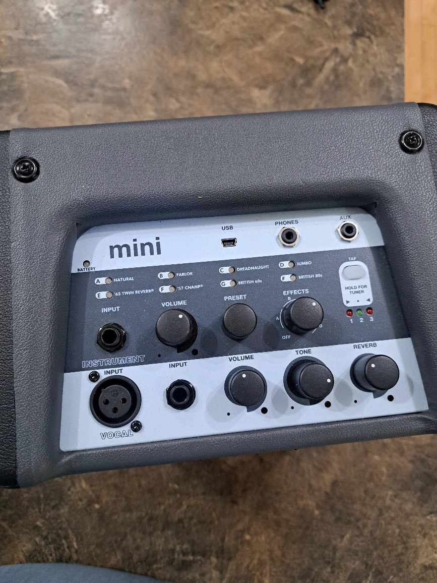 Selling a Fender Passport Mini guitar amplifier. It's in great shape and perfect for practice or small gigs. Compact and portable, it delivers a surprisingly powerful sound for its size. Features include a variety of amp models and effects to dial in your perfect tone. Perfect for musicians on the go! Has connection for your electric guitar and microphone. (Amplifier is working great)