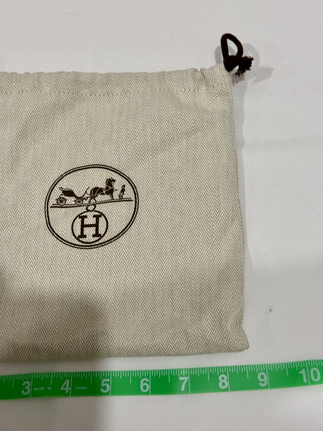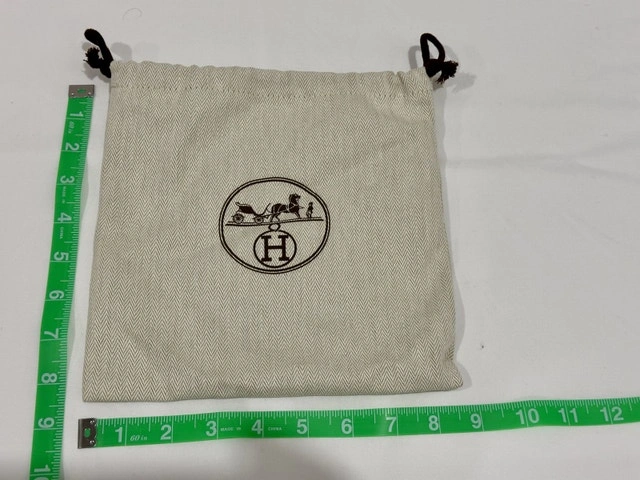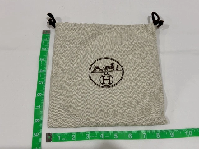 This is a brand new Hermes Paris designer small dust bag. It measures approximately 9 inches by 9 inches and is in excellent condition. Specifications: Brand: Hermes, Colour: Beige with brown logo, Material: Cotton, Size: Small.