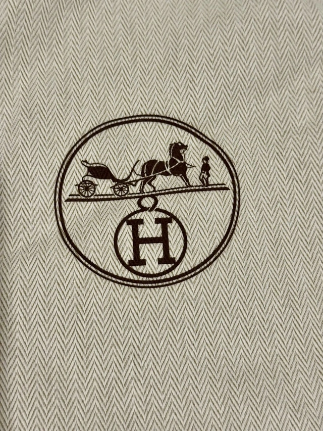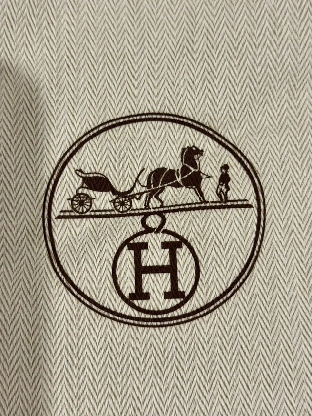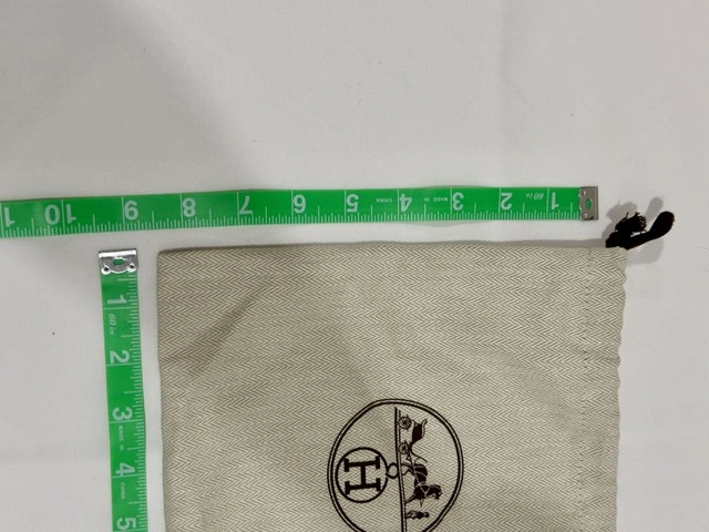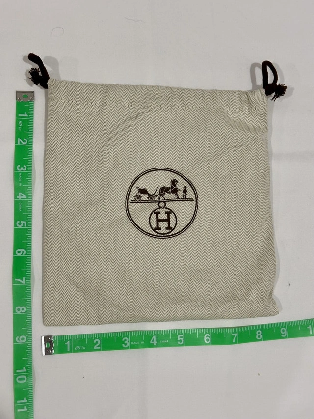 This is a brand new Hermes Paris designer small dust bag. It measures approximately 9 inches by 9 inches and is in excellent condition. Specifications: Brand: Hermes, Colour: Beige with brown logo, Material: Cotton, Size: Small.