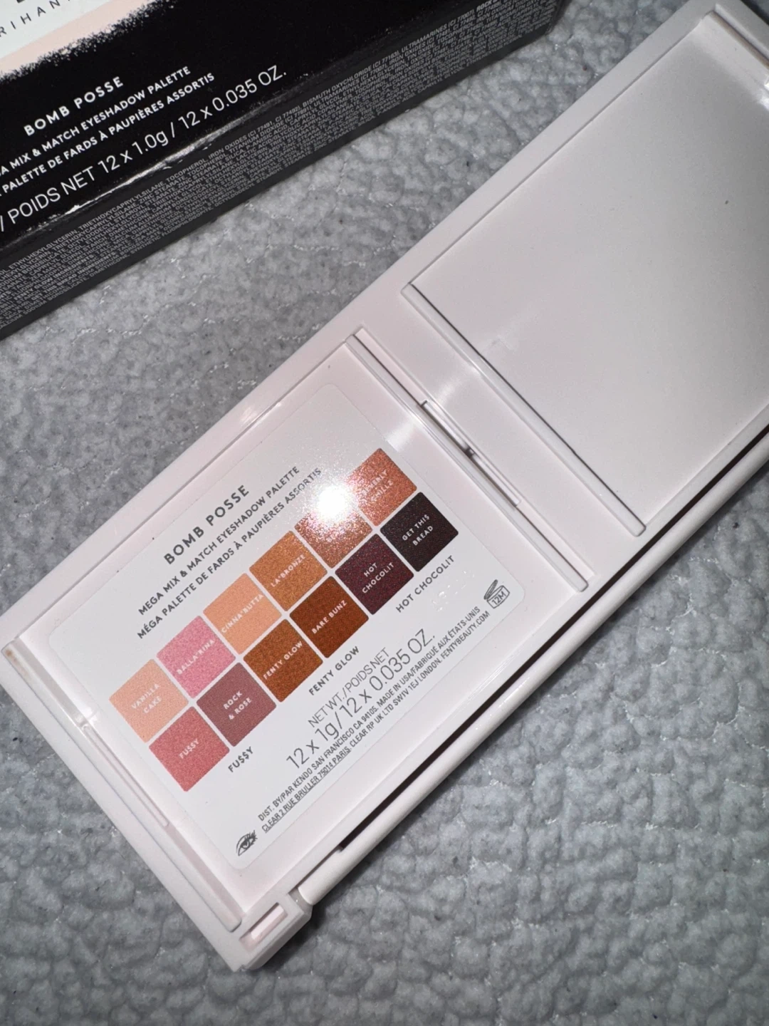 Selling a Fenty Beauty by Rihanna Bomb Posse Mega Mix & Match Eyeshadow Palette. This palette features 12 gorgeous shades to create a variety of looks. The palette is in great condition and comes with its original box!