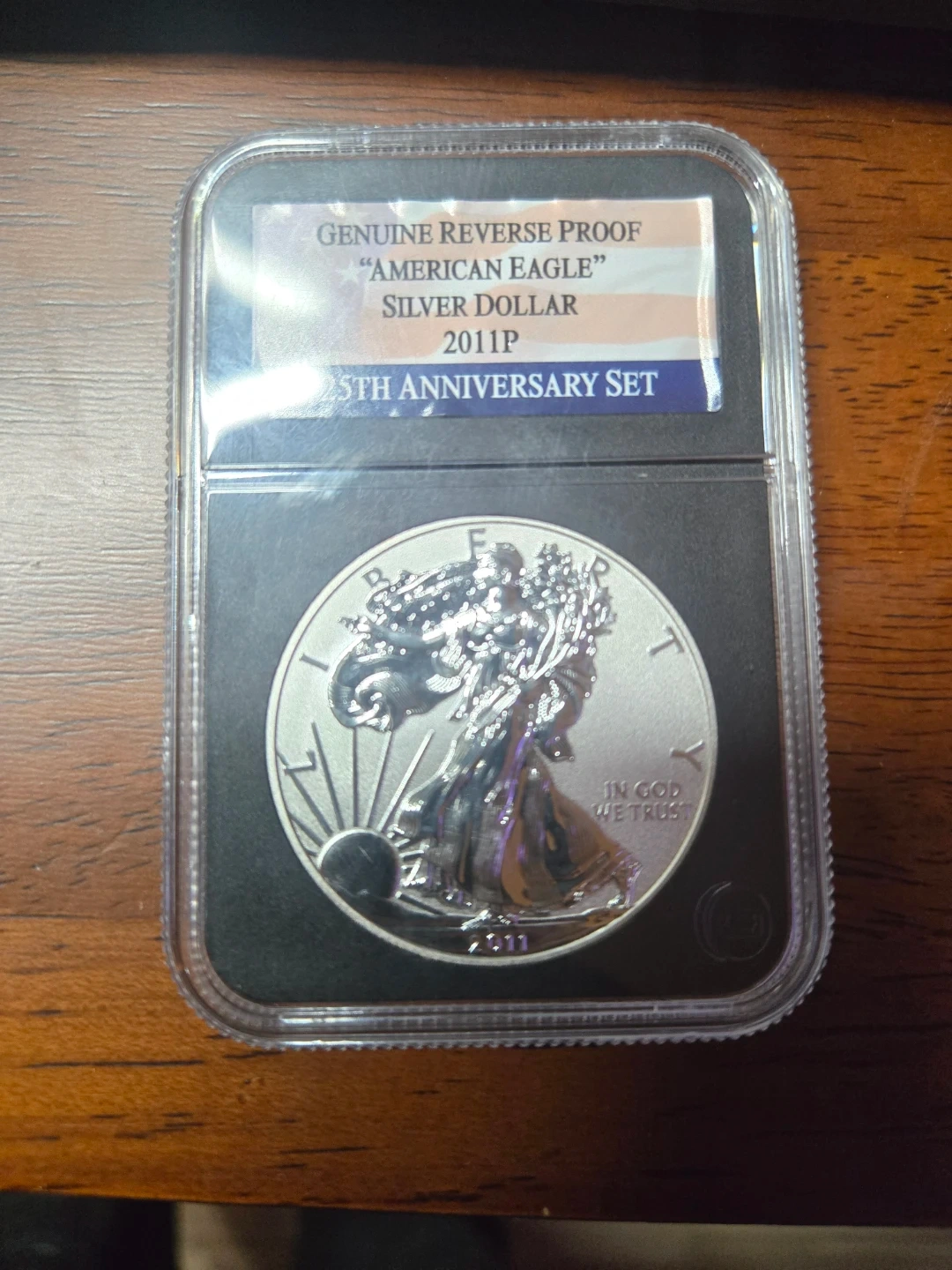 Selling a Genuine Reverse Proof "American Eagle" Silver Dollar 2011P, part of the 25th Anniversary Set. It's in great condition and comes in a protective case