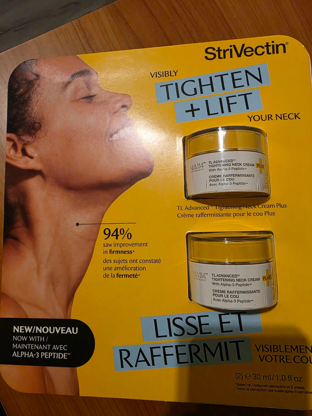 This StriVectin TL Advanced Tightening Neck Cream Plus comes with two 30 ml / 1.0 fl oz jars. It's formulated with NIA-114™ and Alpha-3 Peptide™ for visibly tightening and lifting your neck. Consumers reported 94% saw improvement in firmness.