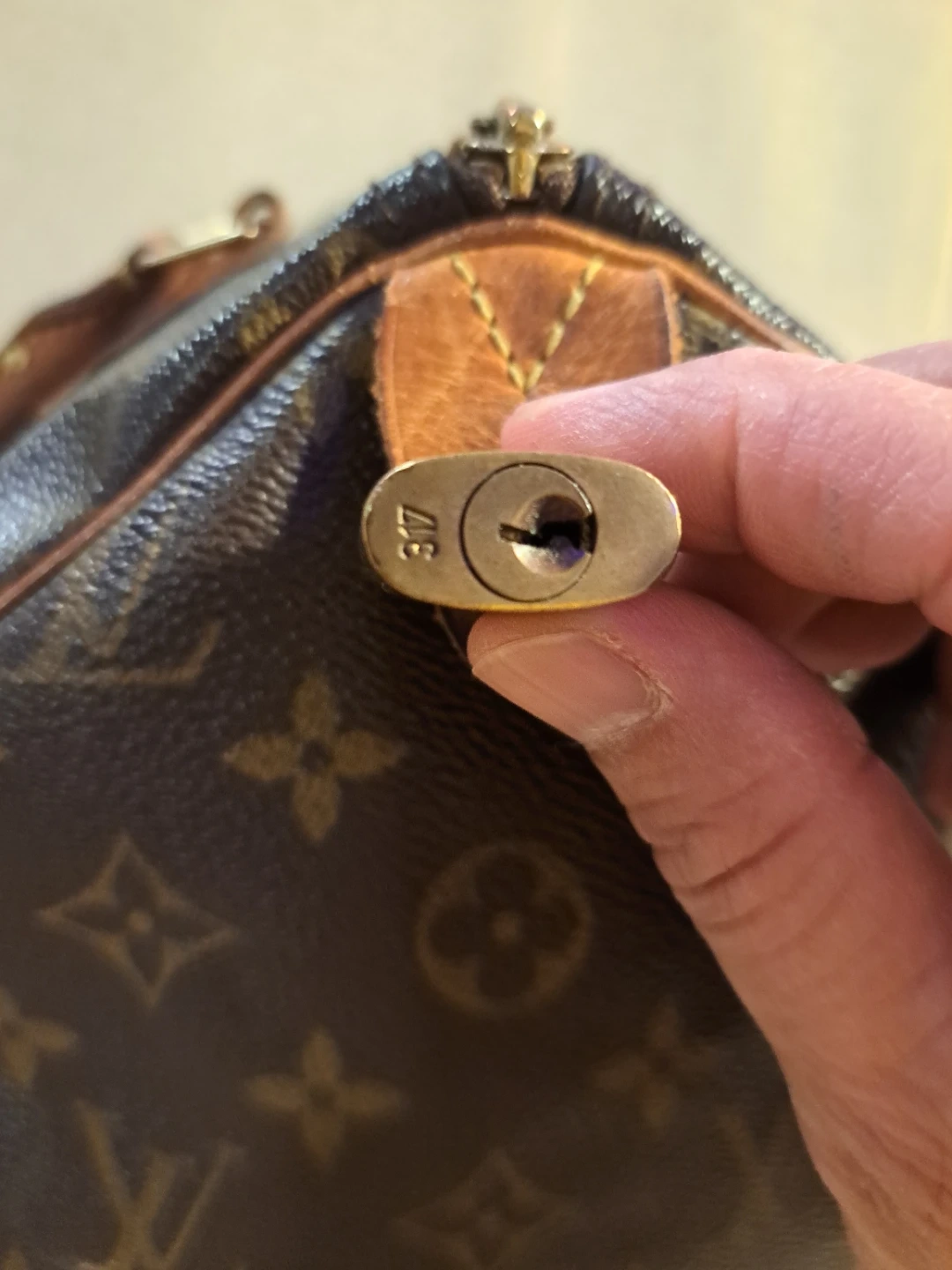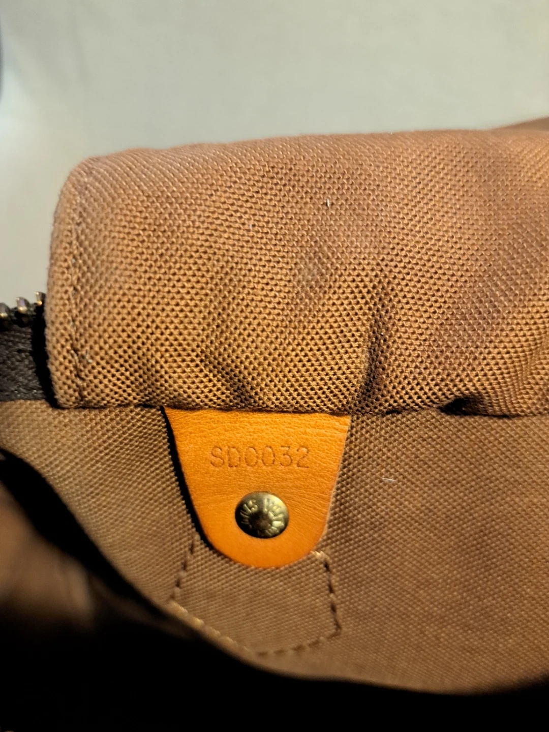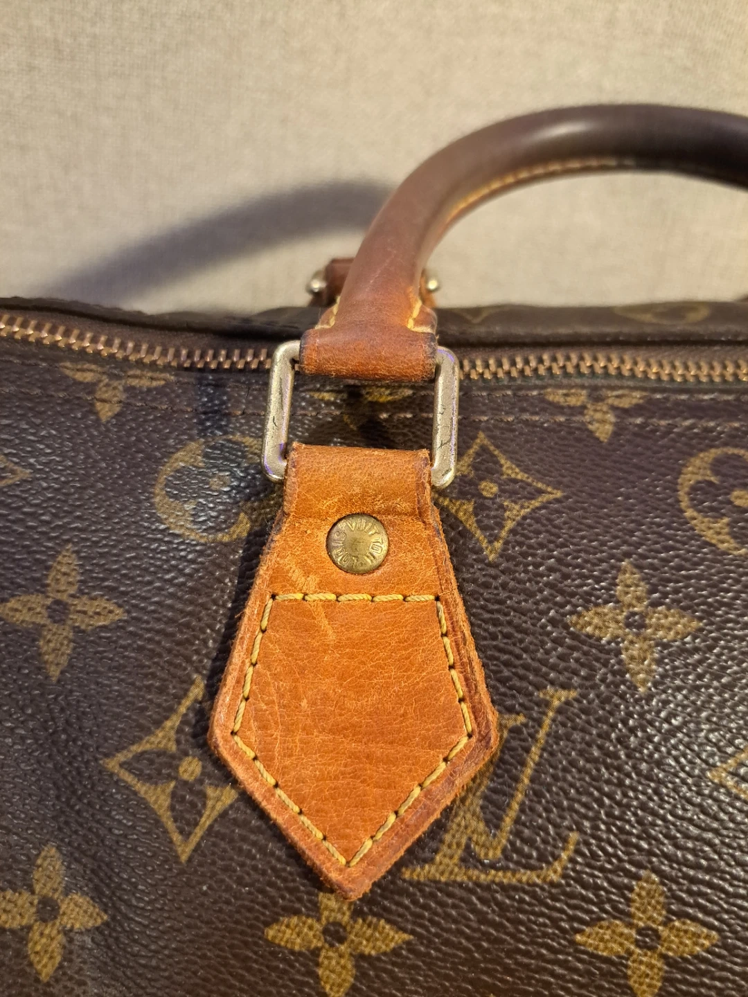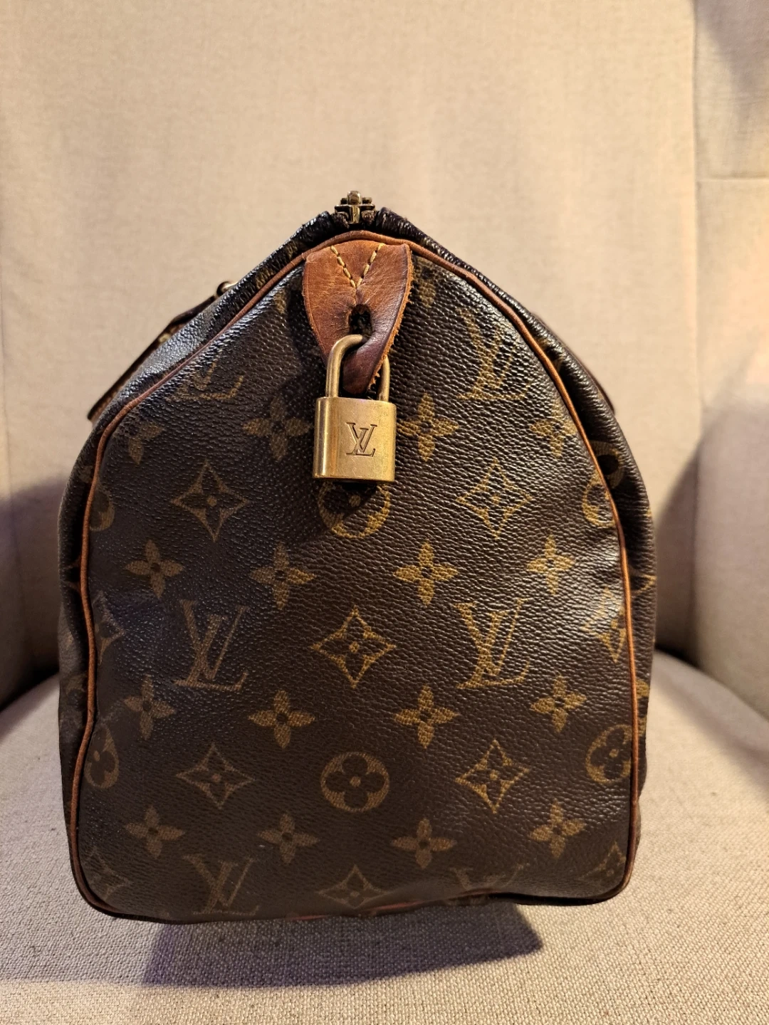 Authentic Louis Vuitton Speedy handbag in the iconic monogram canvas. Features rolled leather handles and a zip-around closure. Made in USA.