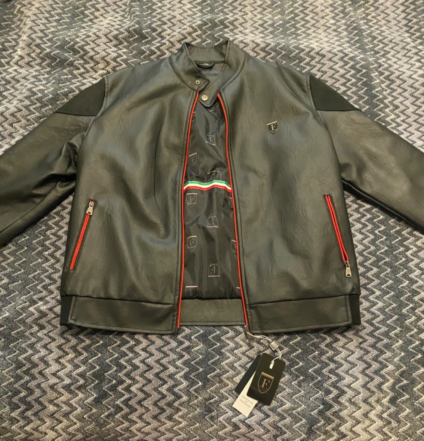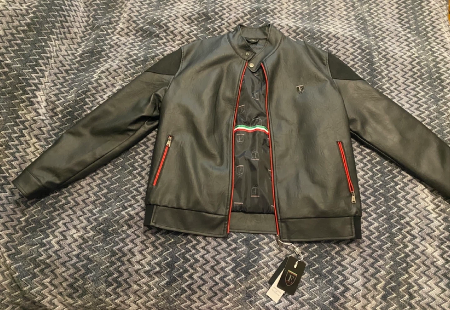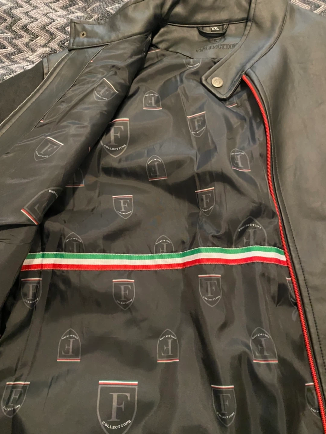 51Here's a stylish blue jacket from F Collections! looks great for any occasion. The material feels nice and it's in excellent condition. Warm great for fall weather! ( LOWEST BEING SOLD 90$ )