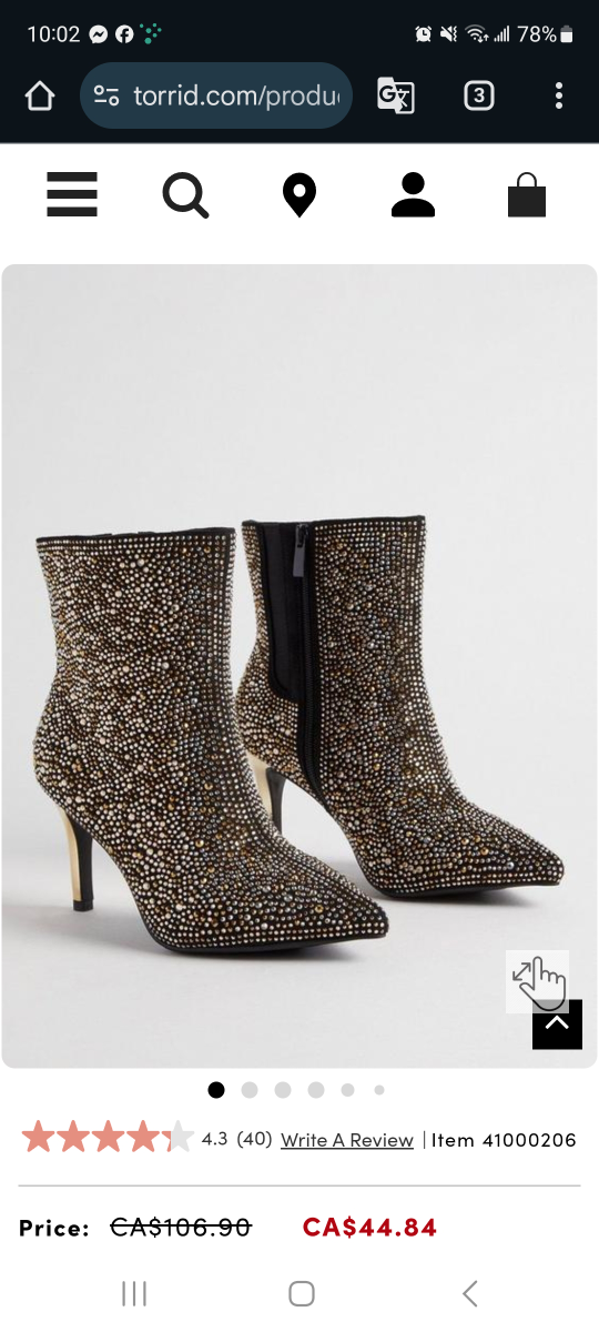 Size 7.5. I bought these at Torrid in WEM last year. I was told they were bought on the website and returned as the buyer did not like the way they looked in person. The heel is 3.5" high. No missing decals, zippers work.