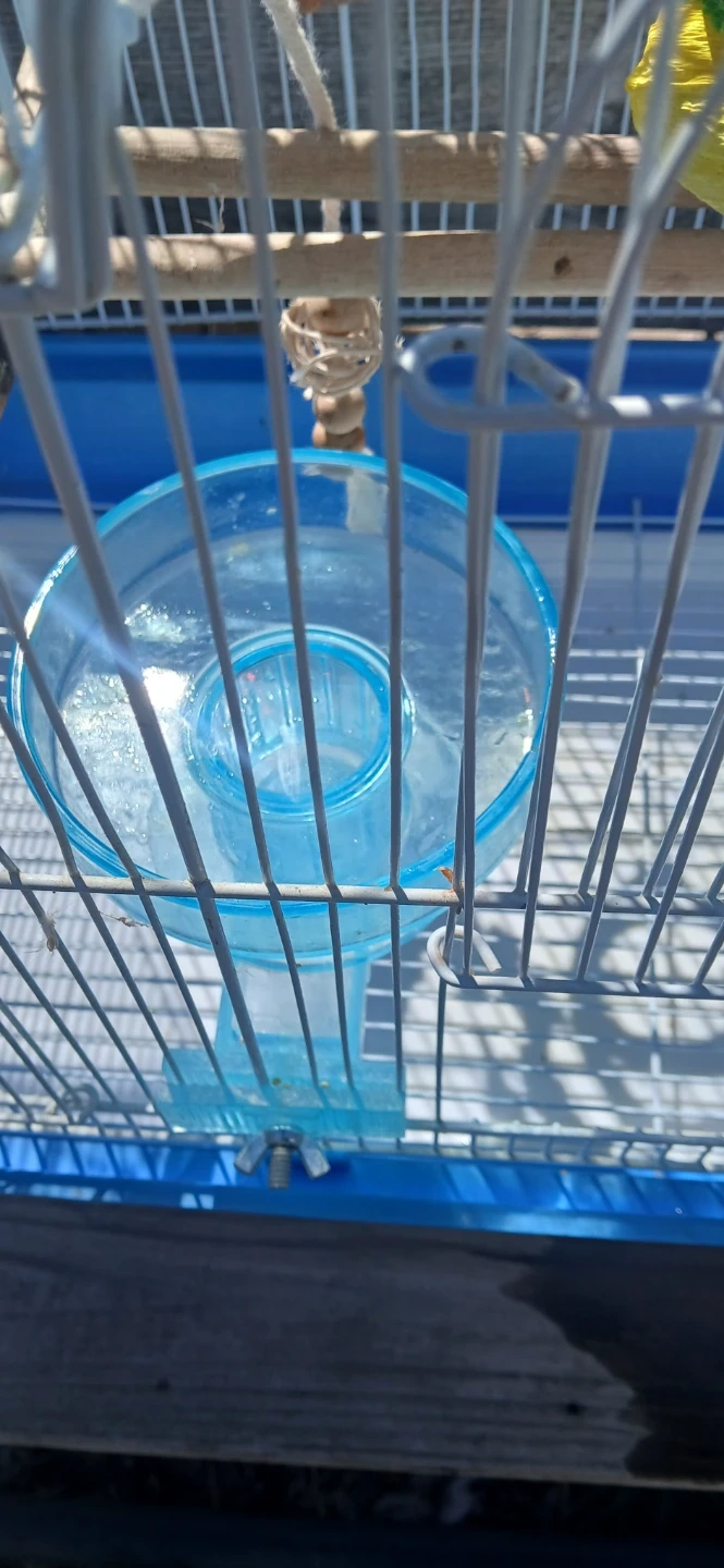 This blue bird cage comes with multiple perches and a water dispenser. It's designed for small birds. Metal construction everything you see in the cage you are getting.