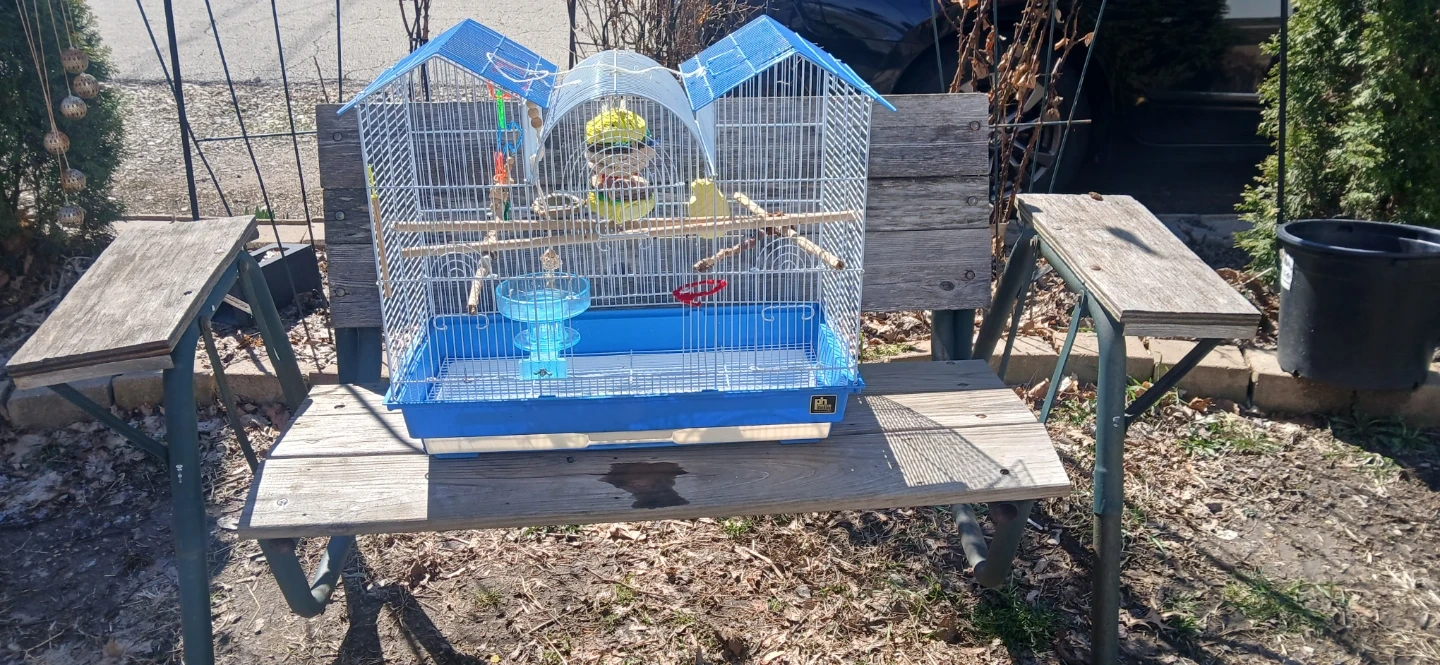 Blue Bird Cage with Accessories