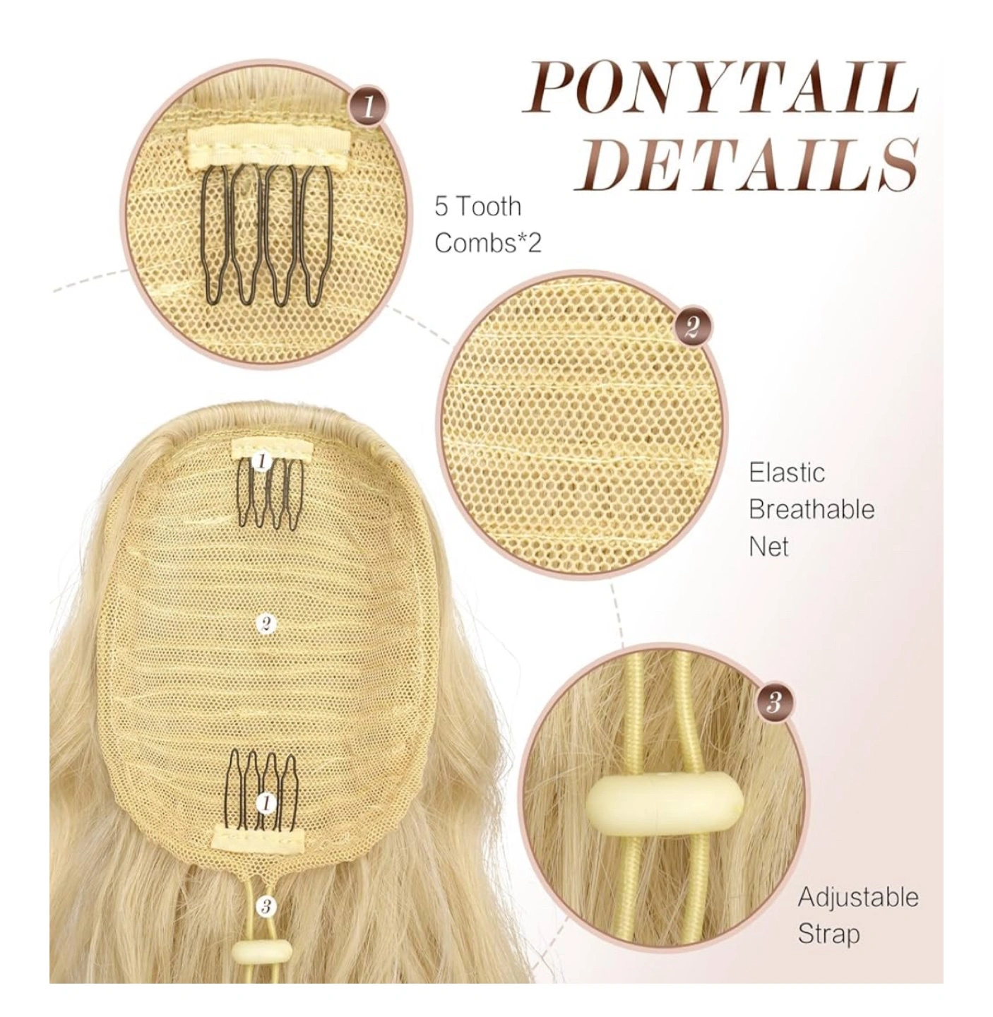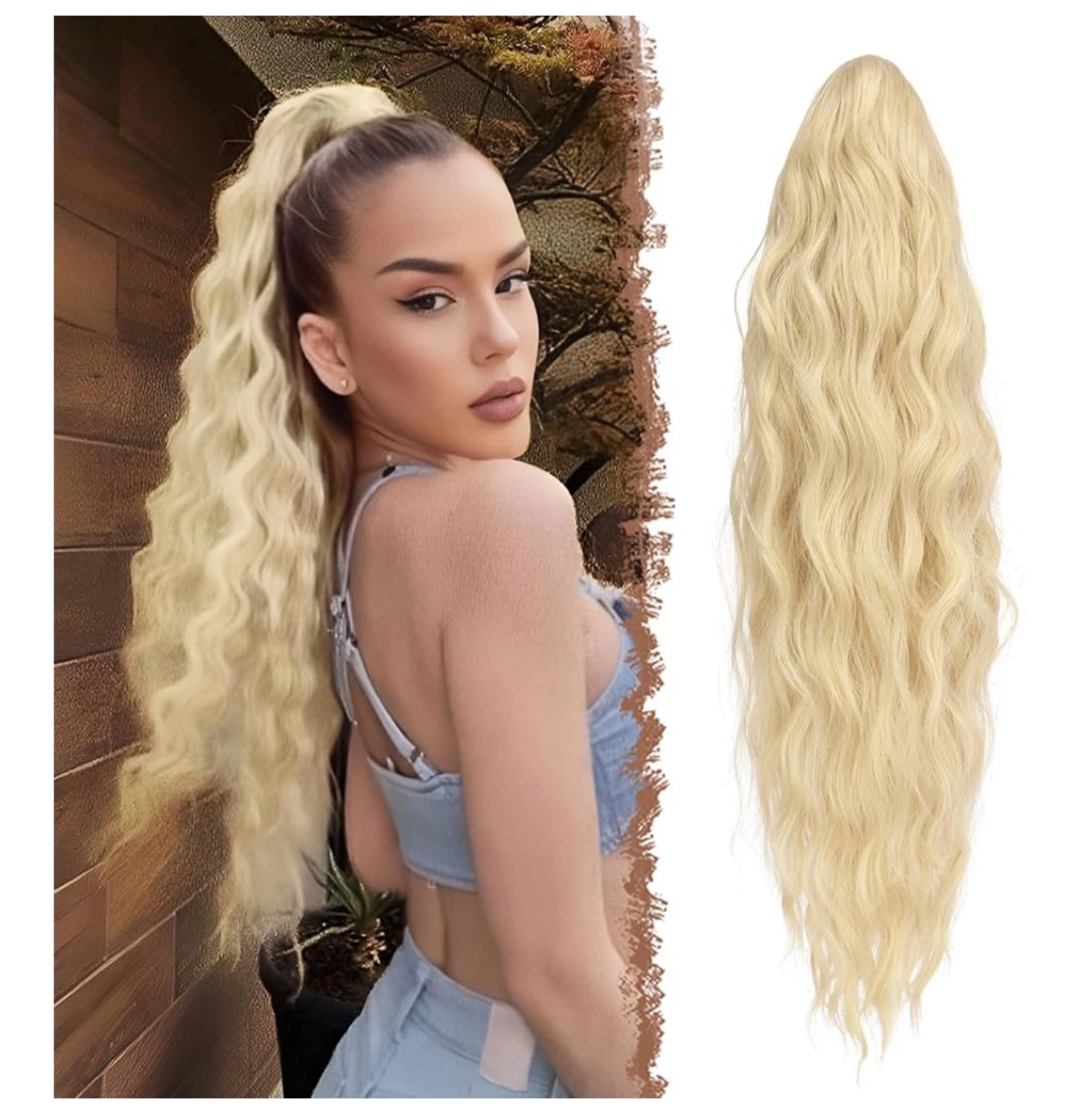 261Add some volume and length with this Feshfen blonde ponytail extension! Easy to attach and style!