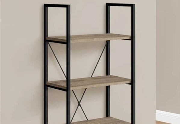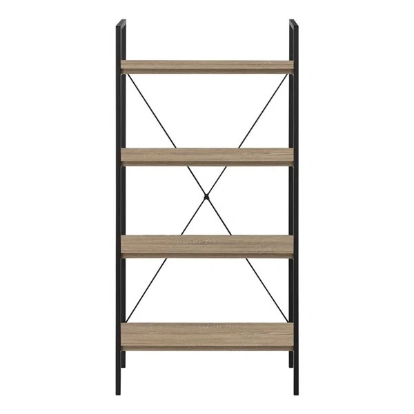 4-Shelf Bookshelf - Black Metal Frame & Wood-Look Shelves