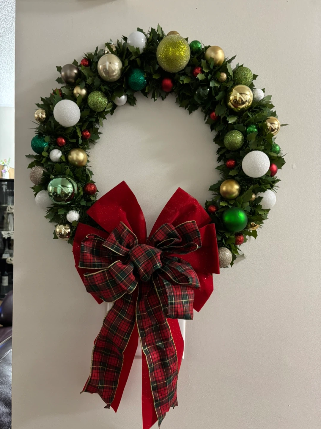 Add a touch of holiday cheer to your home with this beautiful Christmas wreath! It features a mix of colourful ornaments and a classic plaid bow. Perfect for your front door or as part of your indoor holiday decor 18” without the bow No holds, no etransfer, no delivery Pickup with cash only in Mississauga (9th line and Erin Centre Blvd )