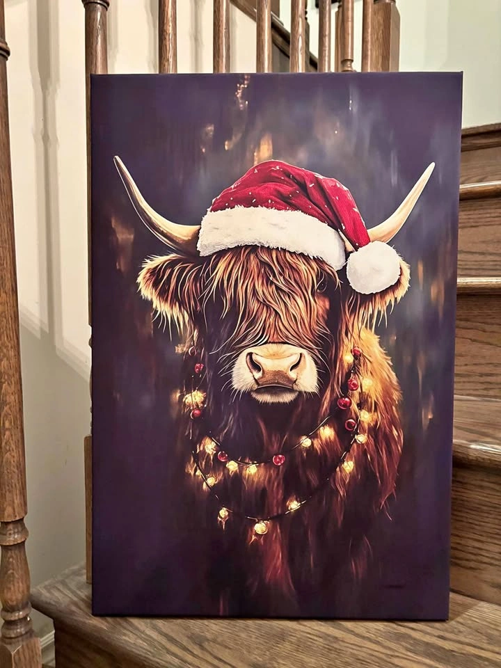 Festive Highland Cow Canvas-Ready To Hang Wall Art