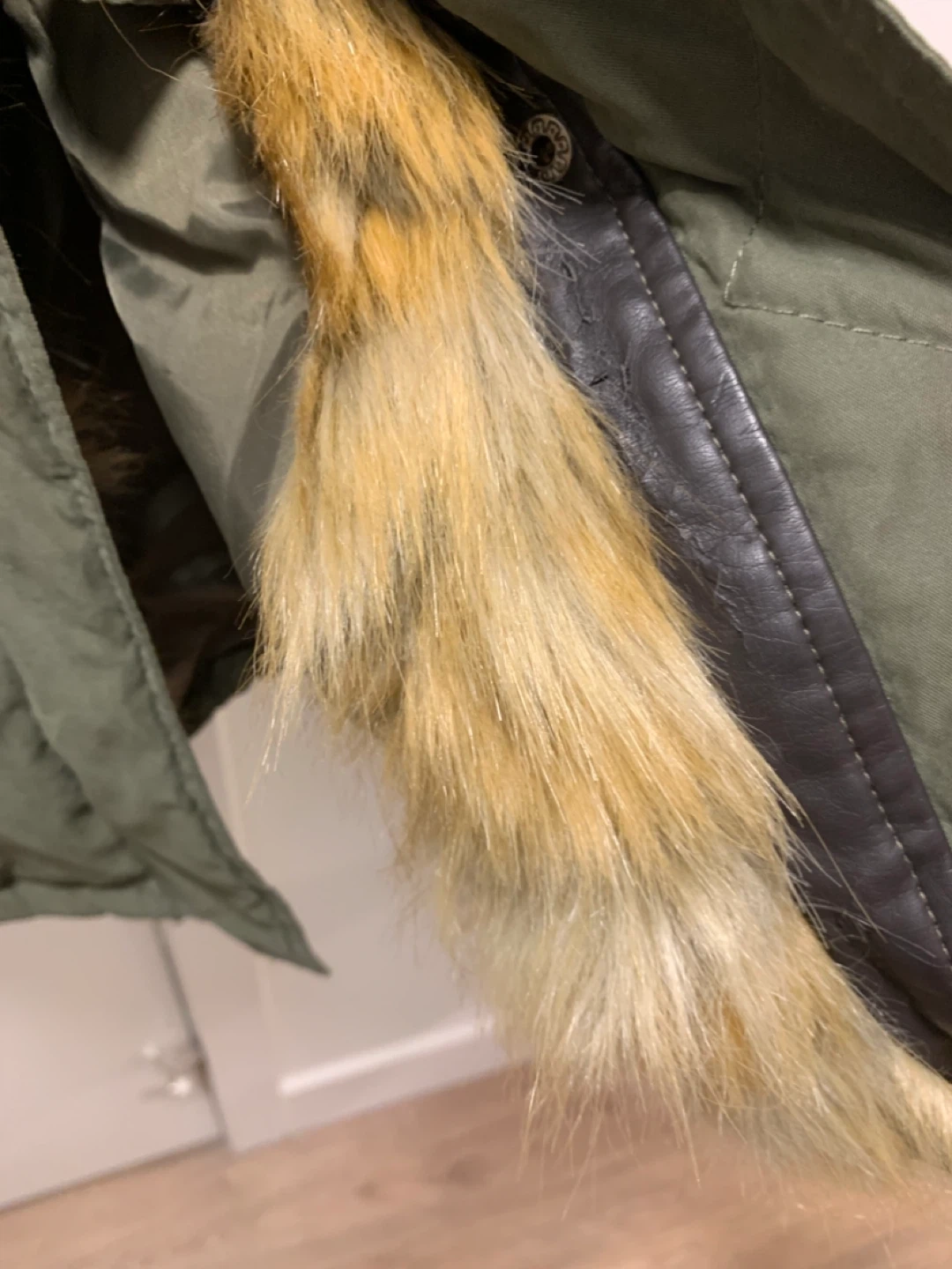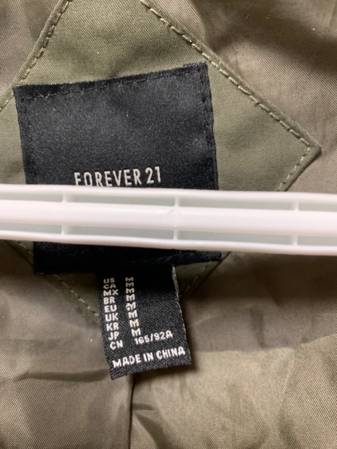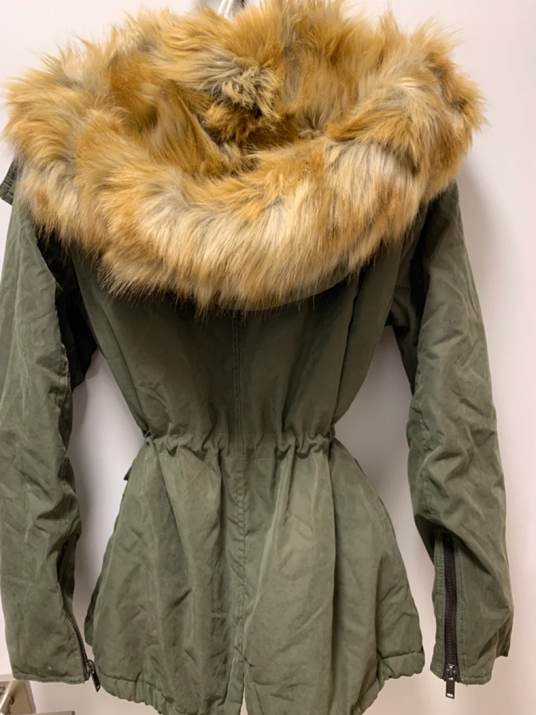 Cozy Forever 21 parka in a lovely green colour! It features a faux fur hood to keep you warm on chilly days. Perfect for adding a touch of style to your winter wardrobe!.