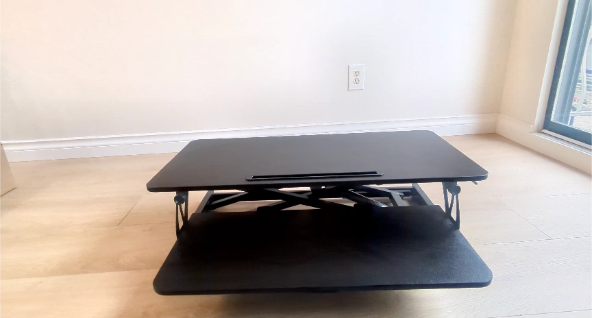 10Selling a FEUIBO standing desk in black! It's in great condition and ready to help you work comfortably from home. It features an adjustable height and a pull-out keyboard tray for added convenience