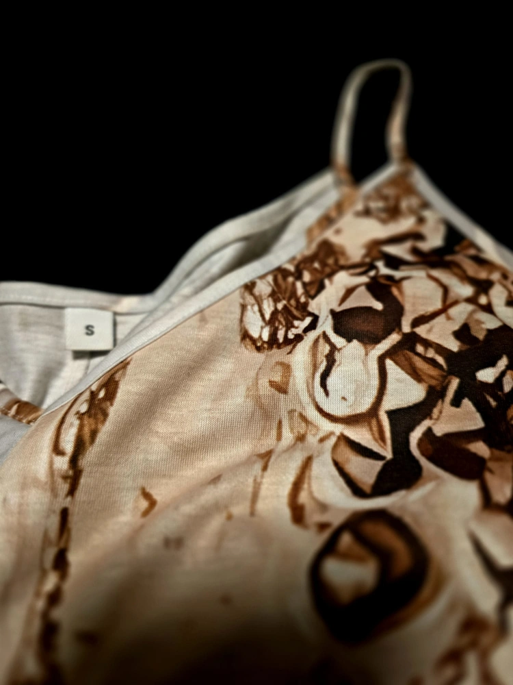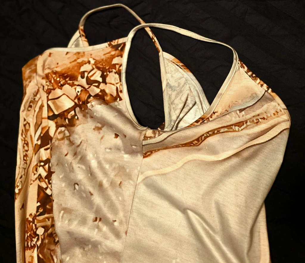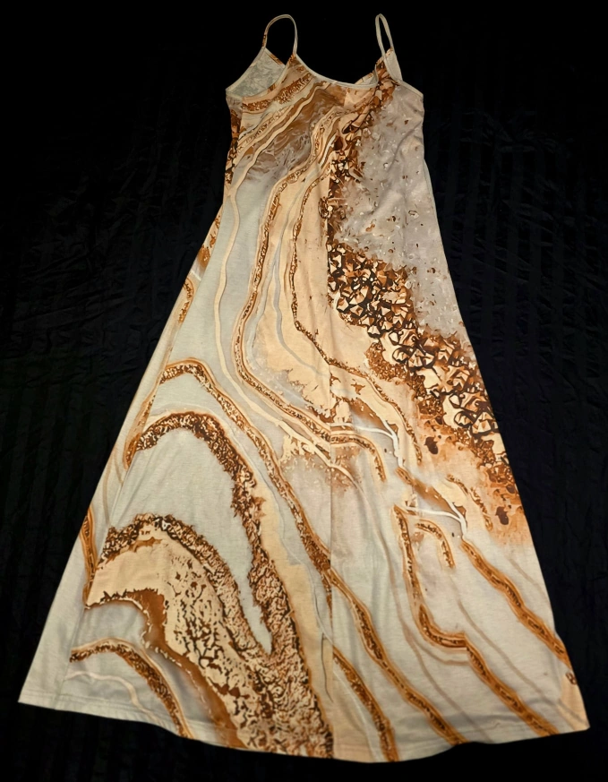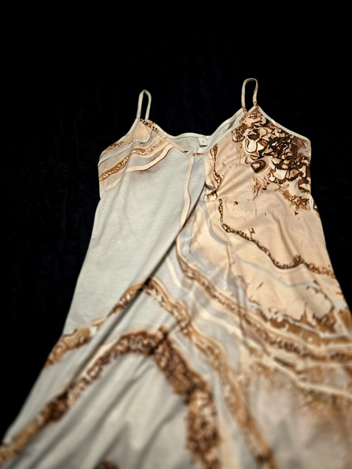 Sleeveless Dress - Beige & Brown Pattern