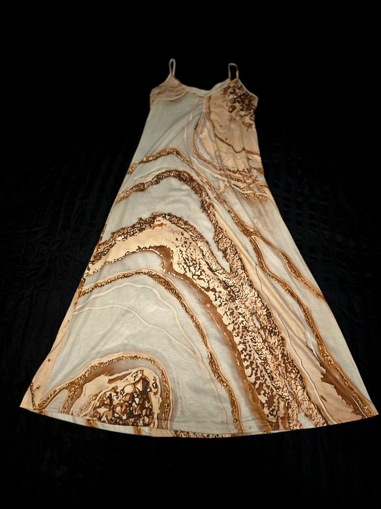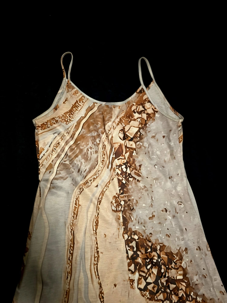 Sleeveless Dress - Beige & Brown Pattern
