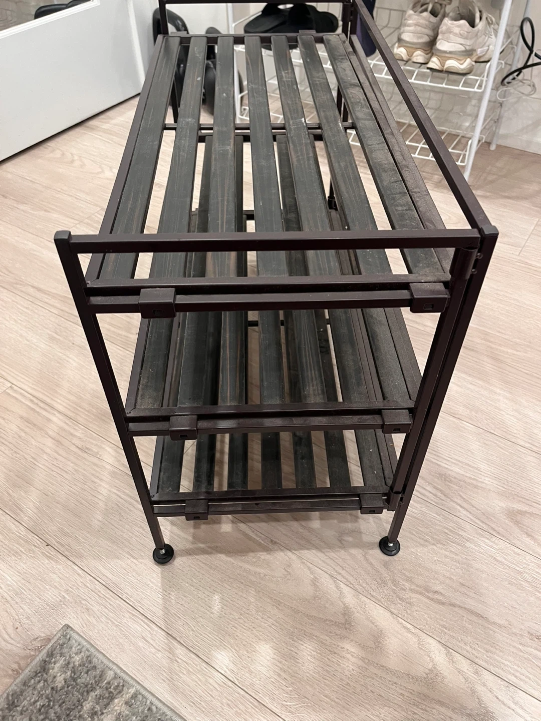 2-Tier Metal and Wood Shoe Rack