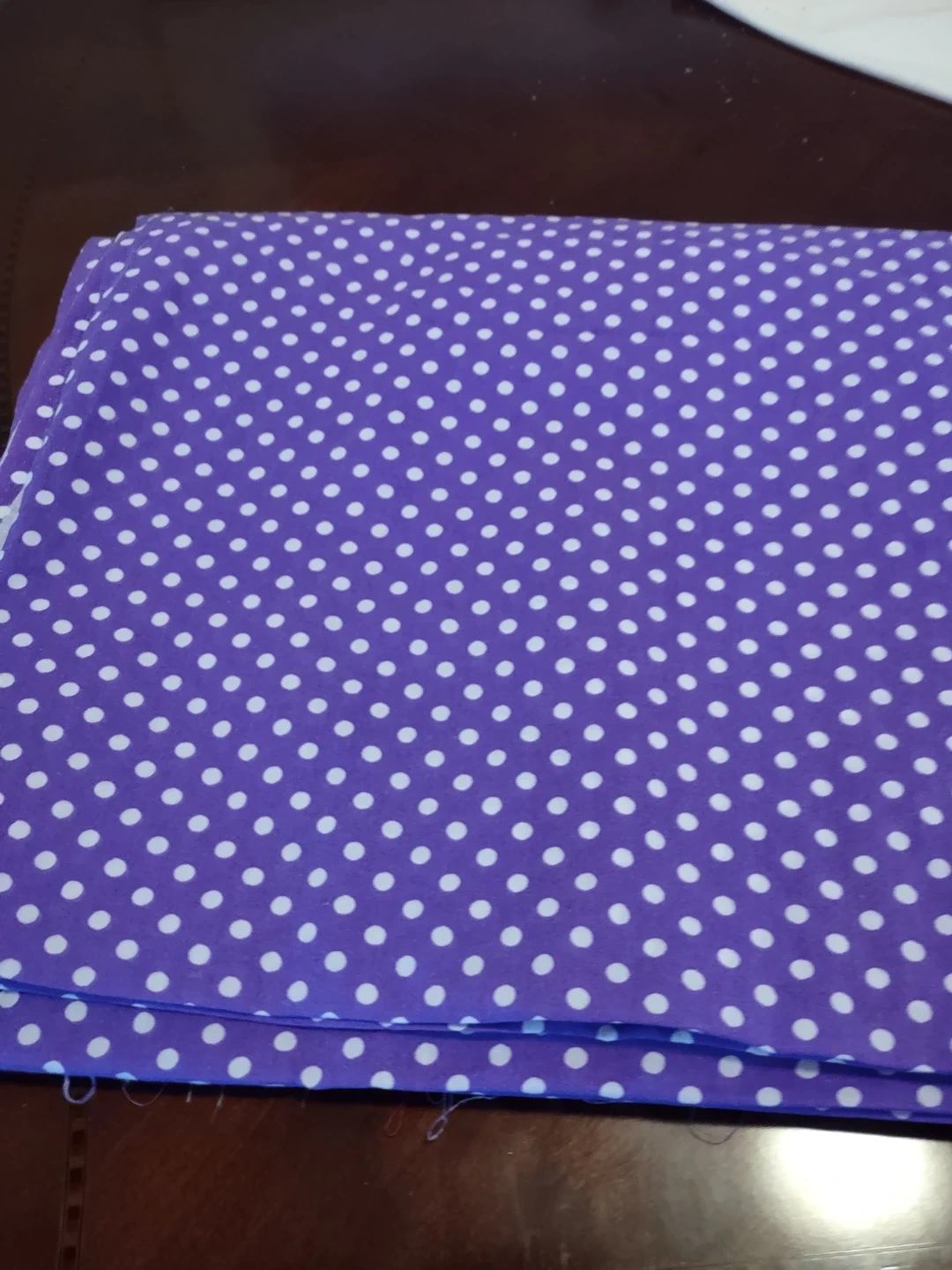 This is a piece of used purple polka dot fabric with white dots, perfect for various sewing projects or crafts. It is in good condition and ready to be repurposed into something beautiful and unique. A little snip here, a stitch there, and you've got yourself a masterpiece in the making! If the ad is up, the fabric is available, so no need to ask! 20.00 ea it's 3 yards