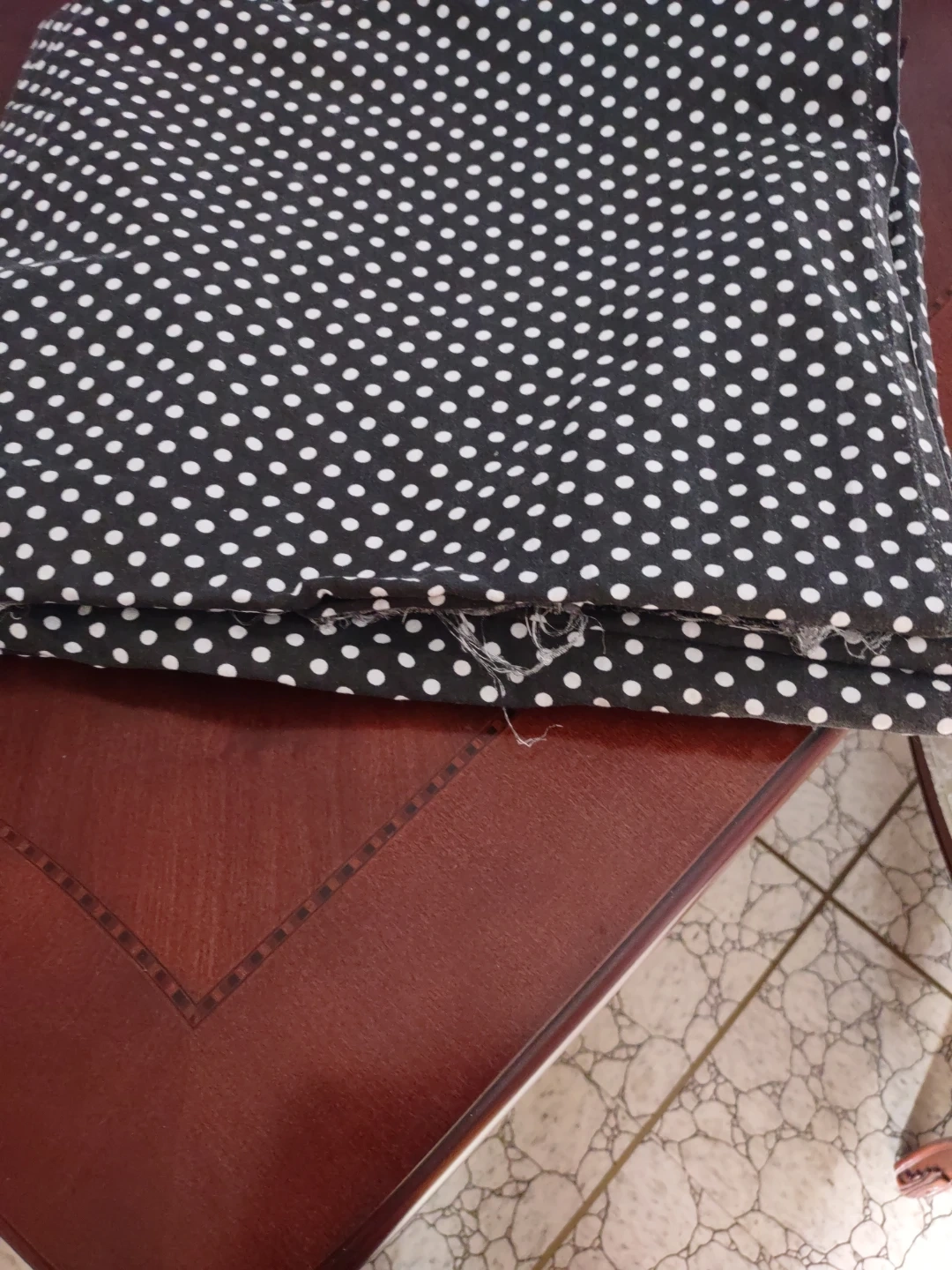This is a piece of used purple polka dot fabric with white dots, perfect for various sewing projects or crafts. It is in good condition and ready to be repurposed into something beautiful and unique. A little snip here, a stitch there, and you've got yourself a masterpiece in the making! If the ad is up, the fabric is available, so no need to ask! 20.00 ea it's 3 yards