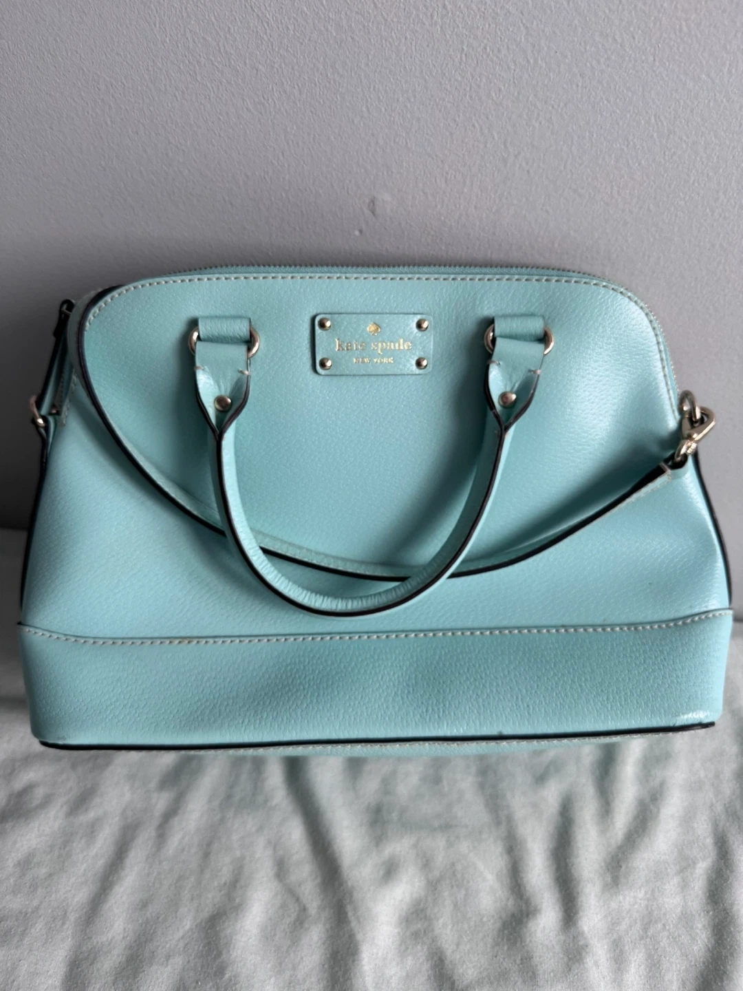 This is a Kate Spade dome satchel in a lovely light blue colour. It's a stylish and practical bag, perfect for everyday use. The dome shape gives it a classic look, and it's in great condition! Never been used.