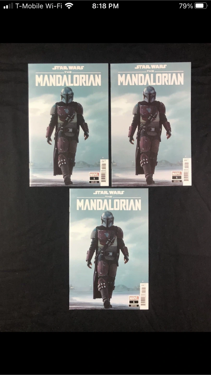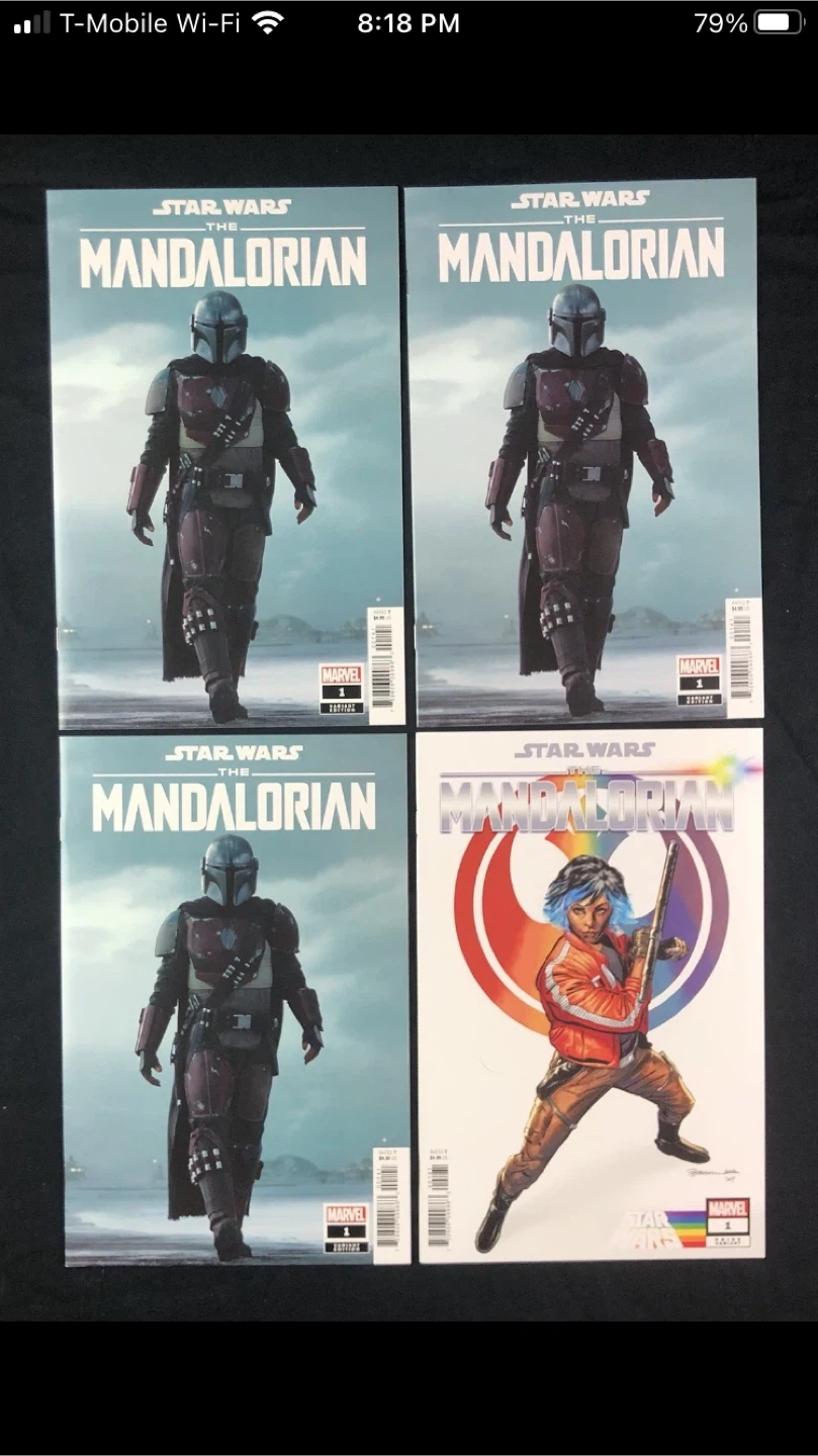 This listing includes four issues of Marvel's Star Wars: The Mandalorian comic. Issues feature variant covers and include issue number 1. Great for collectors!
