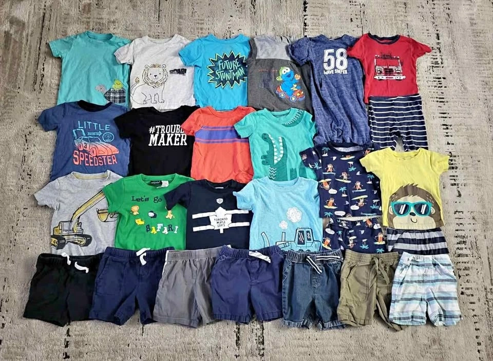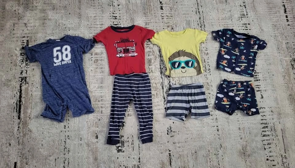 Boys 18-24 months summer clothes lot. Mostly Carter's and The Children's Place. Includes 3 pajama sets, 11 t-shirts, 1 sleeveless top, 1 shorts romper, and 7 shorts. If the ad is up, it's available. Check out my other postings for different sizes.