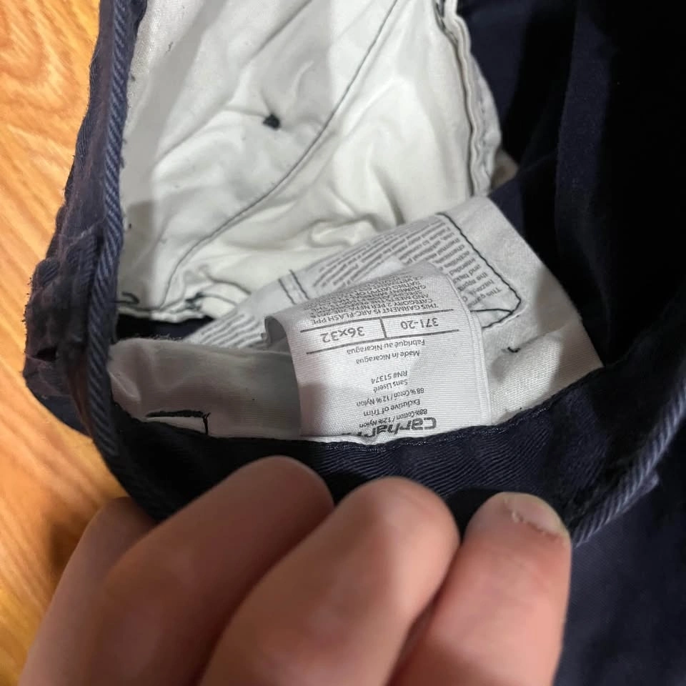 Flame-resistant Carhartt pants in navy, size 36x32. Made with a durable cotton/nylon blend. Great for work or casual wear. Primary pickup at Tim Hortons – 18682 Fraser Hwy #401. Local drop-off can be arranged for an additional fee.