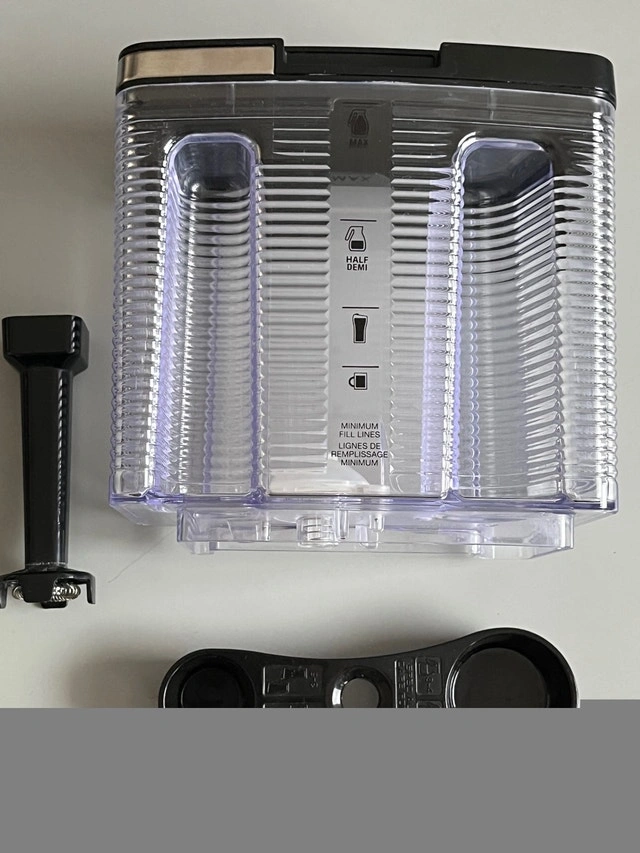 Includes water reservoir and lid, frother, coffee measuring spoon, manual, and quick start guide.