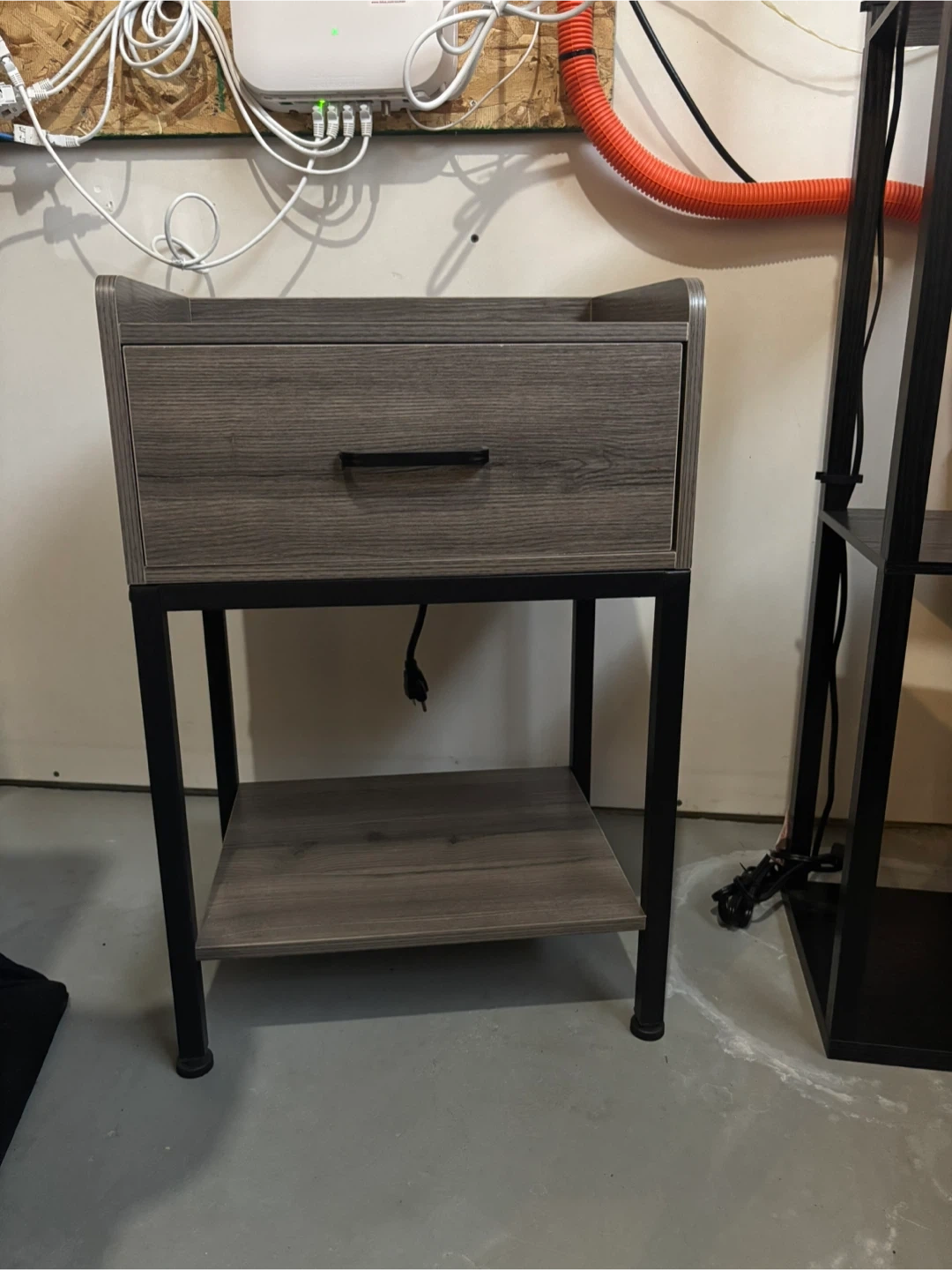 Rustic Brown Wood End Table with Drawer and Charging Station