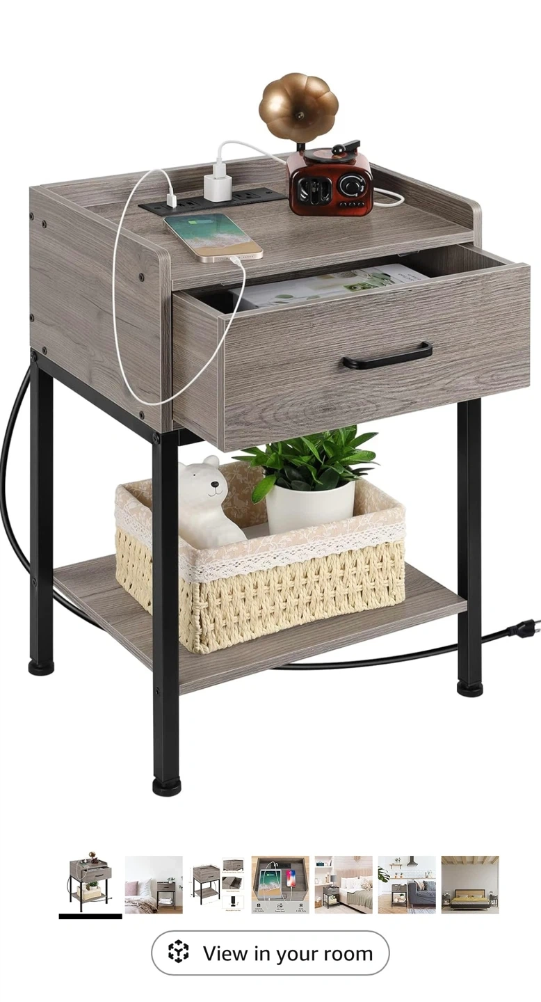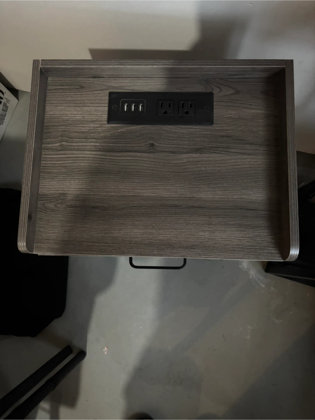 Rustic Brown Wood End Table with Drawer and Charging Station