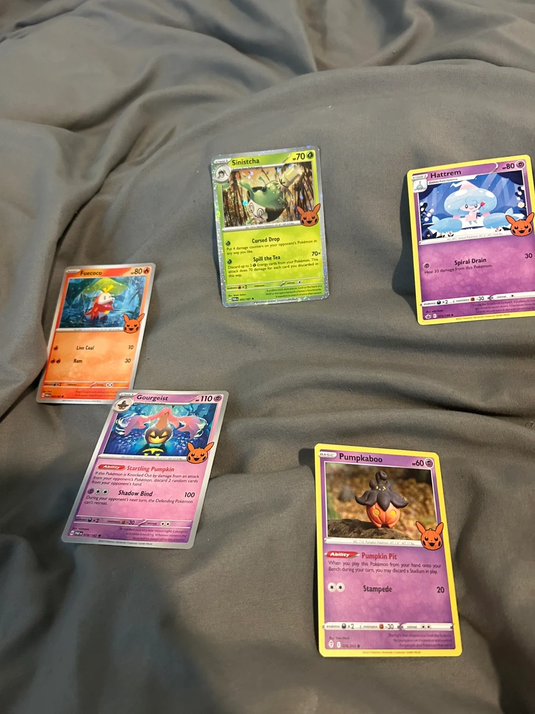 Includes Fuecoco, Sinistcha, Hattrem, Gourgeist, and Pumpkaboo Pokémon cards. These are collectible trading cards perfect for Pokémon fans. Limited edition Halloween cards. Yes it’s free.