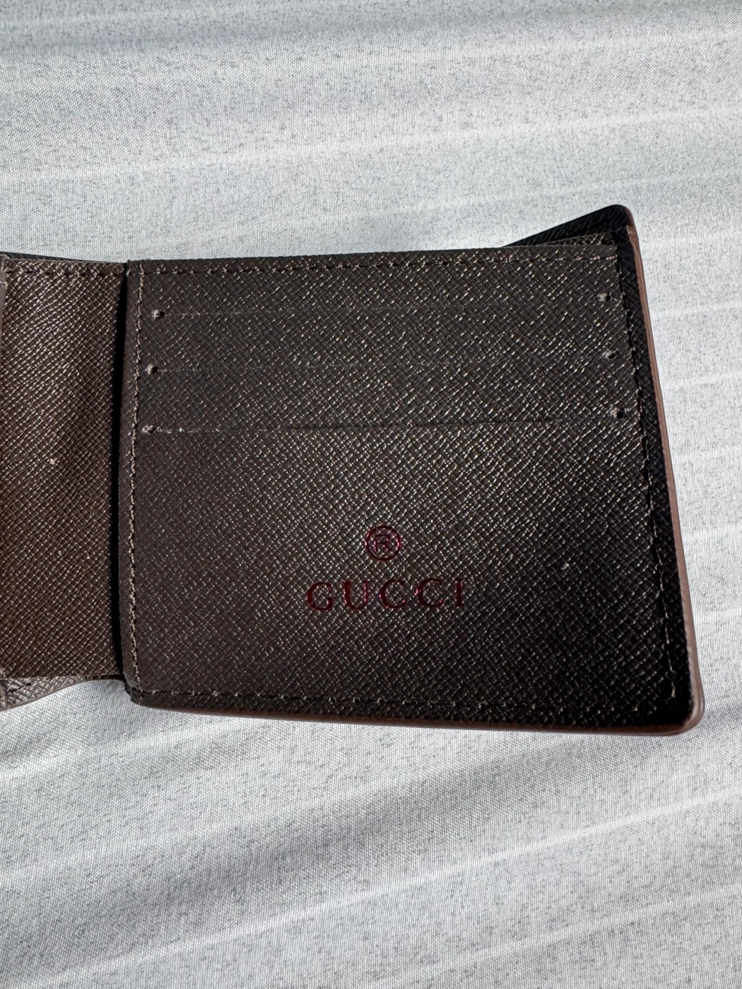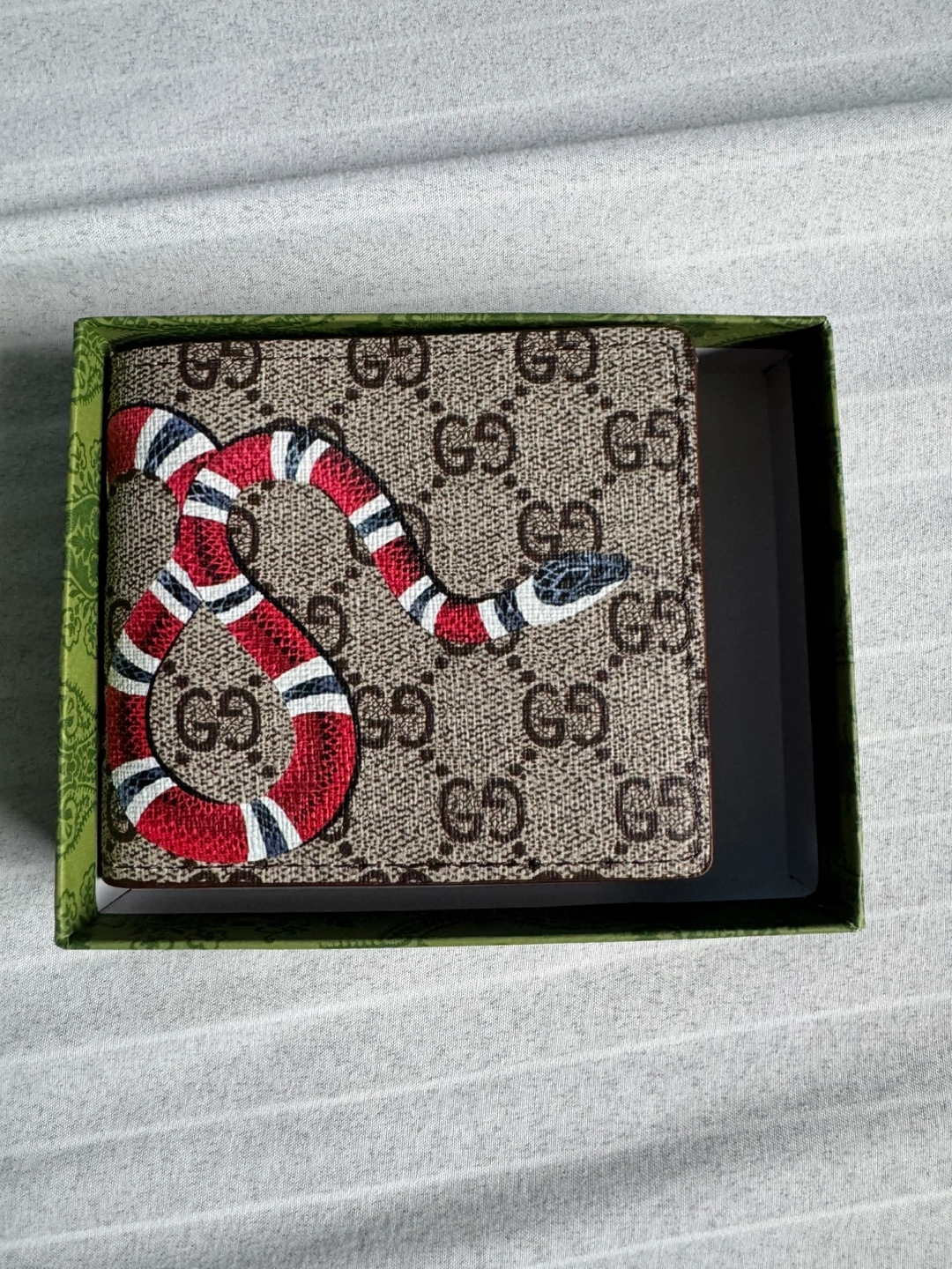 Premium quality Gucci-inspired wallet. Stylish and sleek, perfect for everyday use or as a gift. Clean interior with card slots and bill compartment.