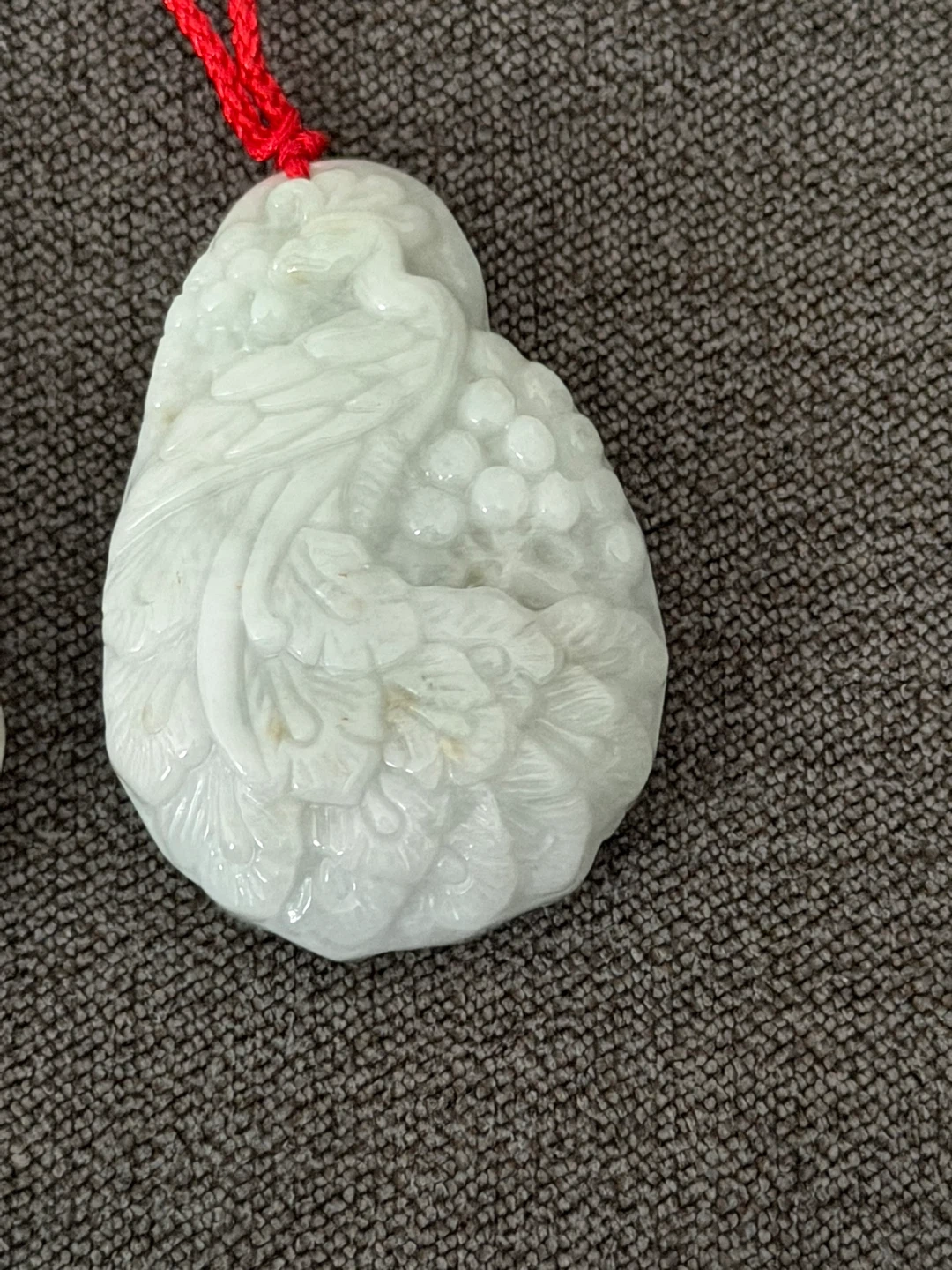 Carved Jade Pendant with Red Cord
