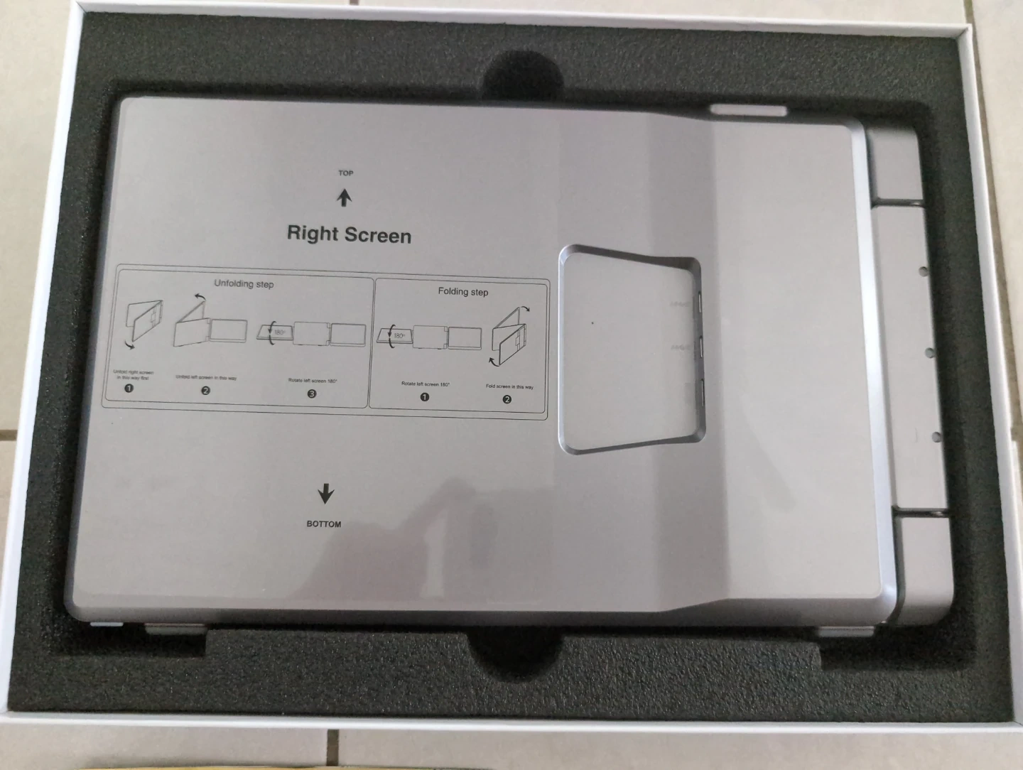 This is a portable tri-screen monitor. It's 14 inches with a 1200p full HD 16:10 resolution. This monitor is plug & play and compatible with most laptops. Includes a carrying case.