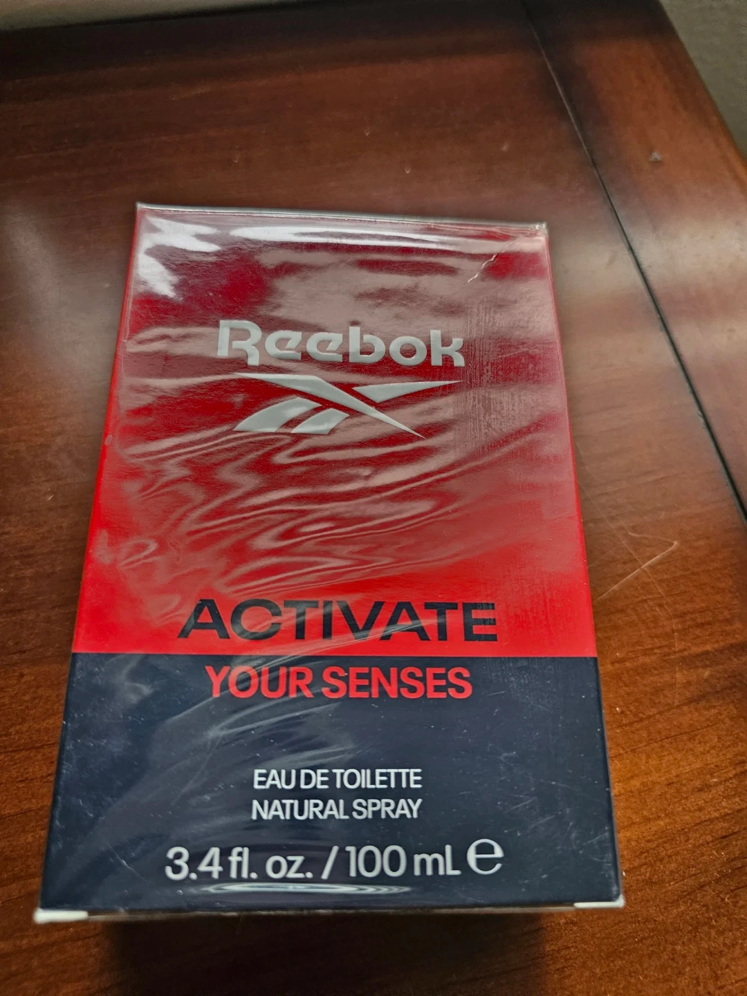 This is a collection of four Reebok Eau de Toilette Natural Spray bottles, each with a 100 mL volume. The collection includes "Cool Your Body," "Inspire Your Mind," "Move Your Spirit," and "Activate Your Senses." They're all brand new and sealed.