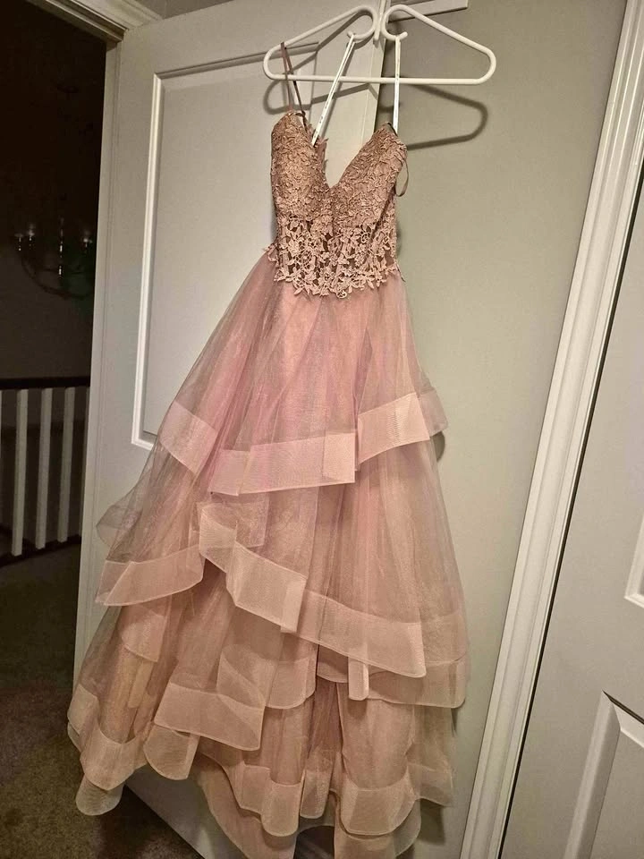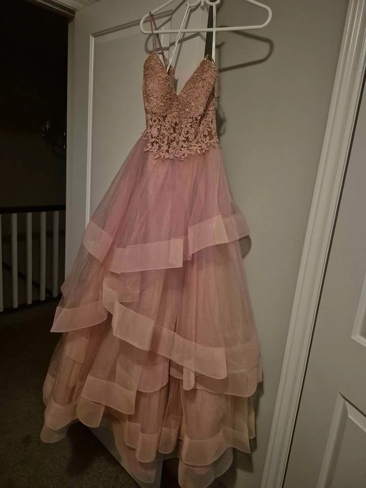This prom dress was used only once and has no stains. It comes from a smoke-free home. I originally paid $500 for it, and it's a very beautiful dress. You're more than welcome to come and try it on.