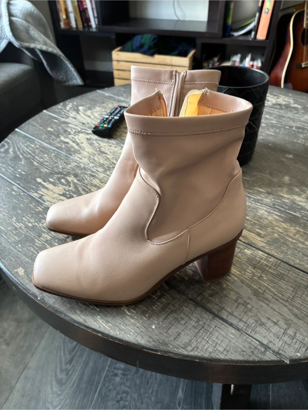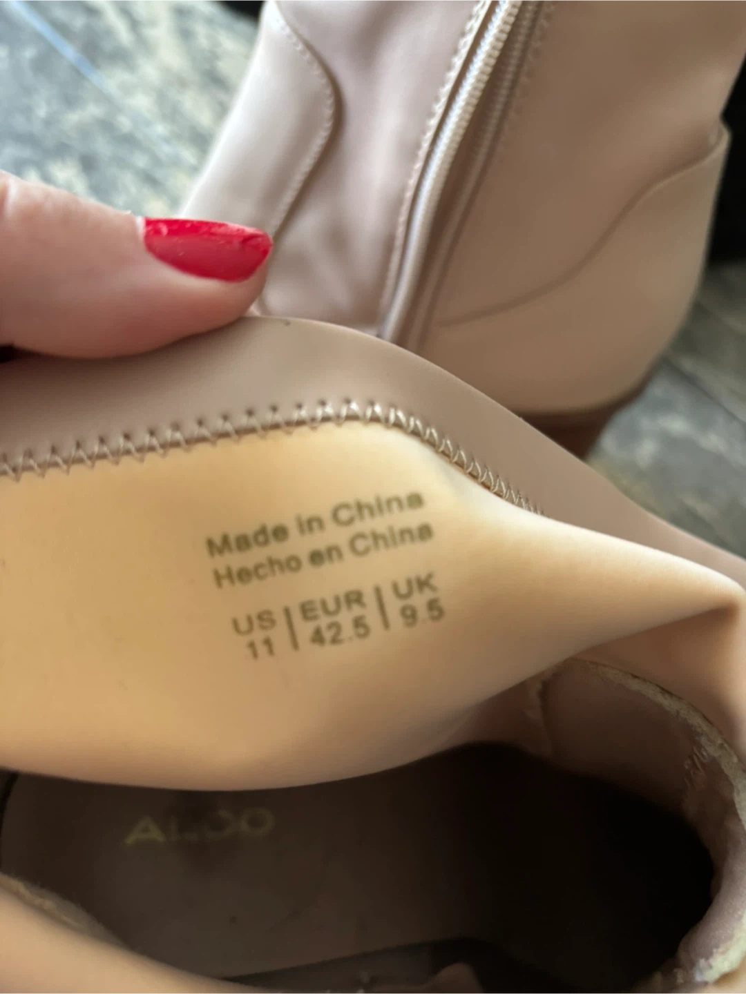 These ALDO ankle boots are a lovely pink shade with a comfortable block heel. They're made in China and feature a side zipper for easy on and off. Size 11 US.