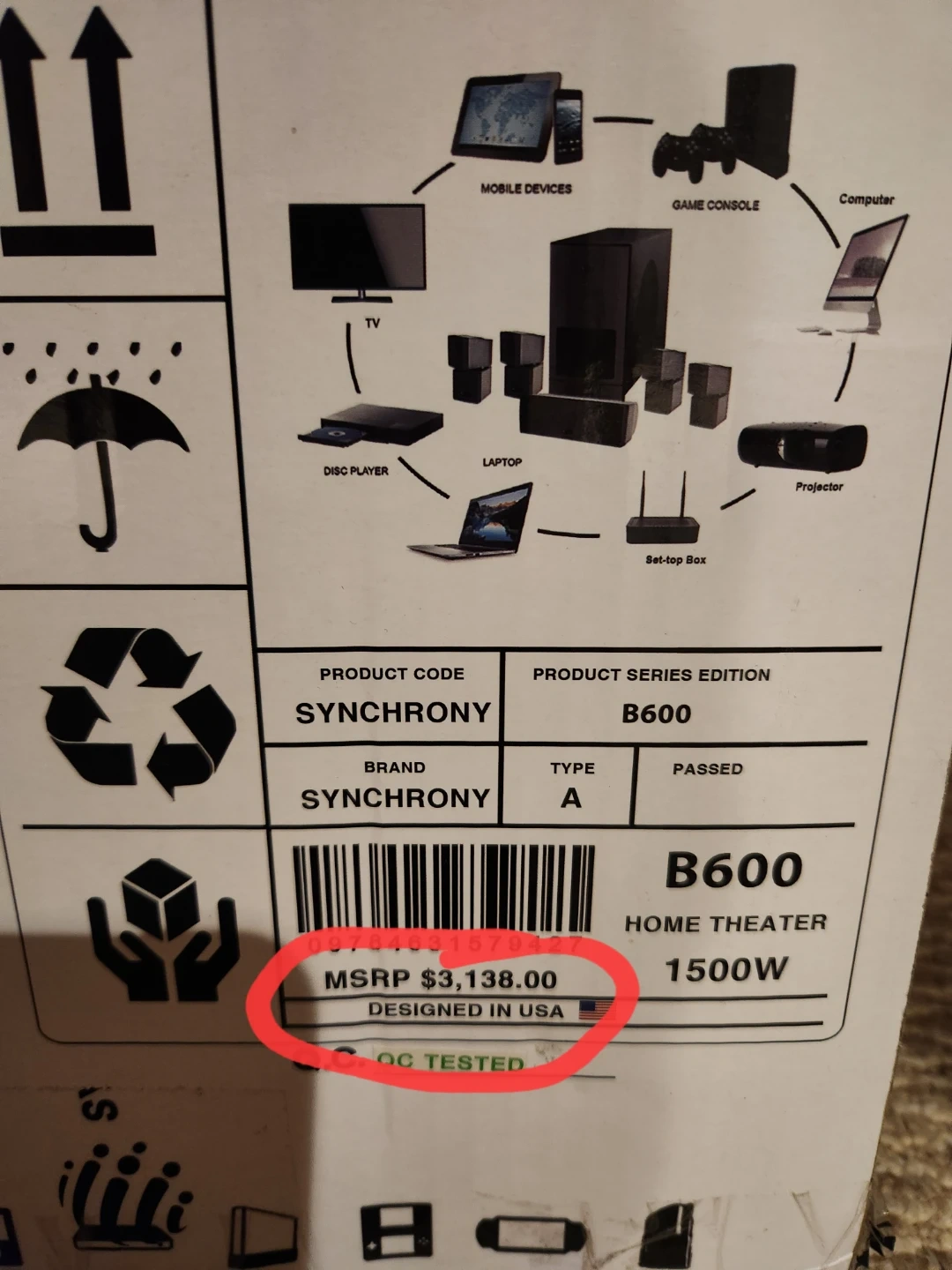 Brand new still in the box Synchrony B600 Home theater speakers. 1500 watt. Worth $3k. Complete set of 5 speakers and subwoofer.