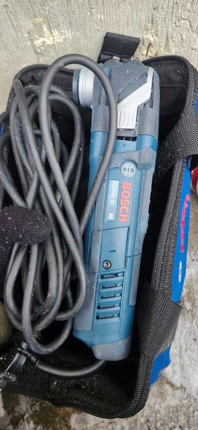 I'm selling a gently used Bosch GOP40-30 Multi-Tool, perfect for cutting, sanding, and scraping. It has a powerful motor with constant electronic control for consistent speed. Great for detailed work in tight spaces. Model: GOP40-30, Power Source: Corded Electric, Voltage: 120V, Features: Variable Speed, Quick Accessory Change. If the ad is up, the tool is still available.