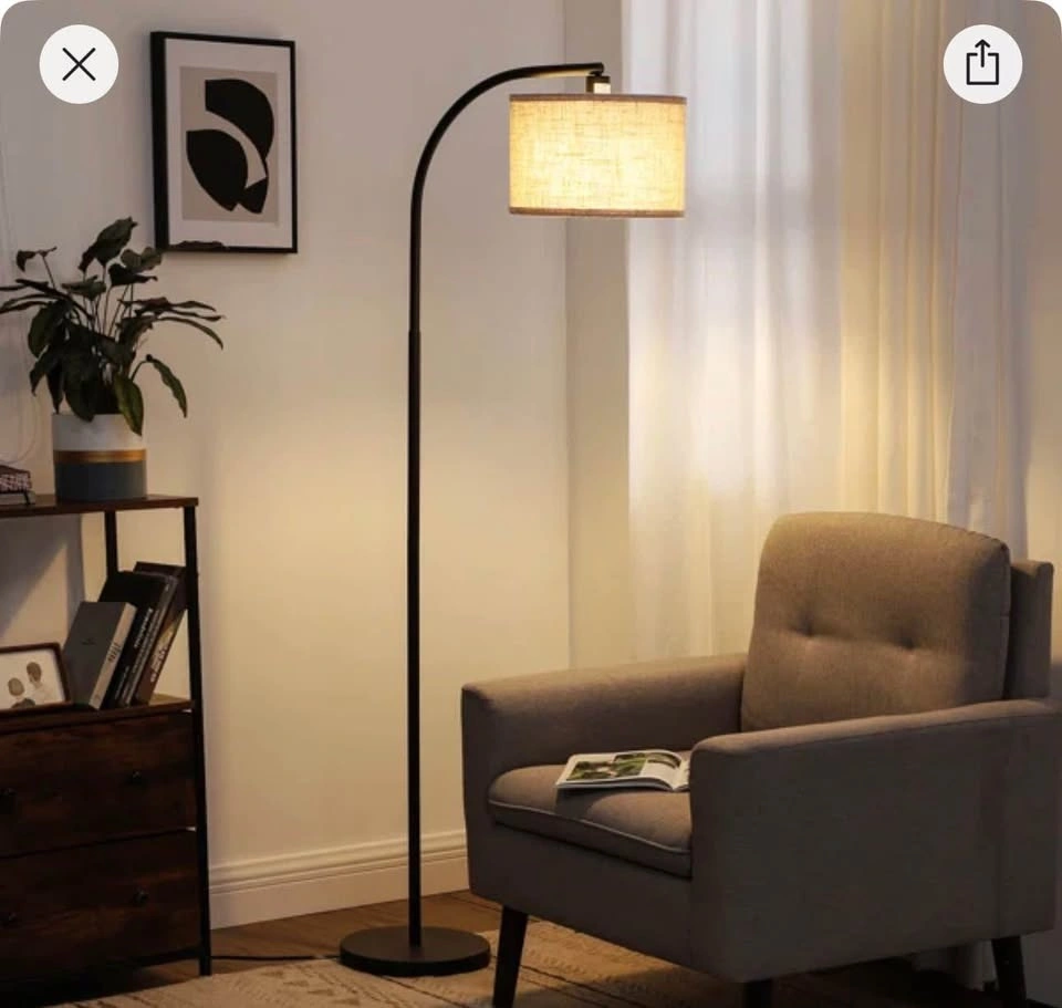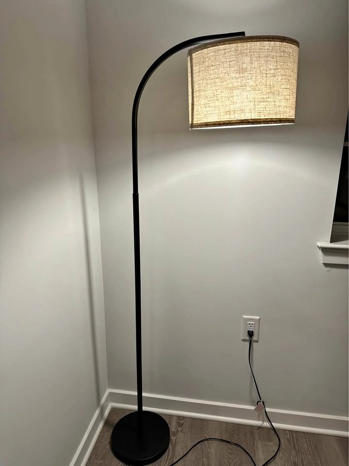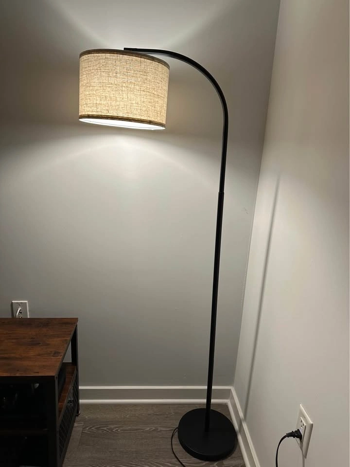 Selling my 63” arched floor lamp (black metal with fabric shade).