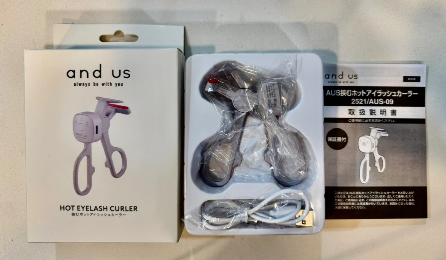 This is a hot eyelash curler from And Us. It features adjustable temperature and convenient USB charging. Comes with a USB cable.
