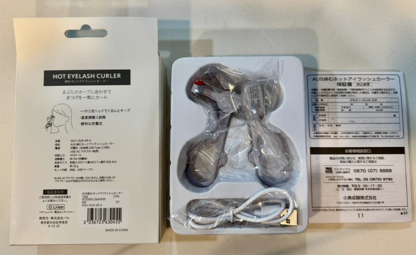 This is a hot eyelash curler from And Us. It features adjustable temperature and convenient USB charging. Comes with a USB cable.