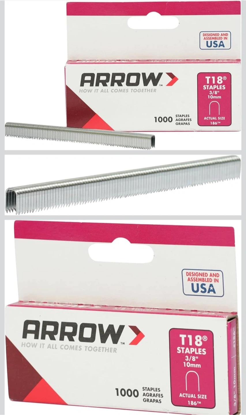 Selling an Arrow T18 staple gun along with a box of 3/8" staples. The staples are T18 staples and are 3/8" or 10mm in size. Great for various projects around the house!