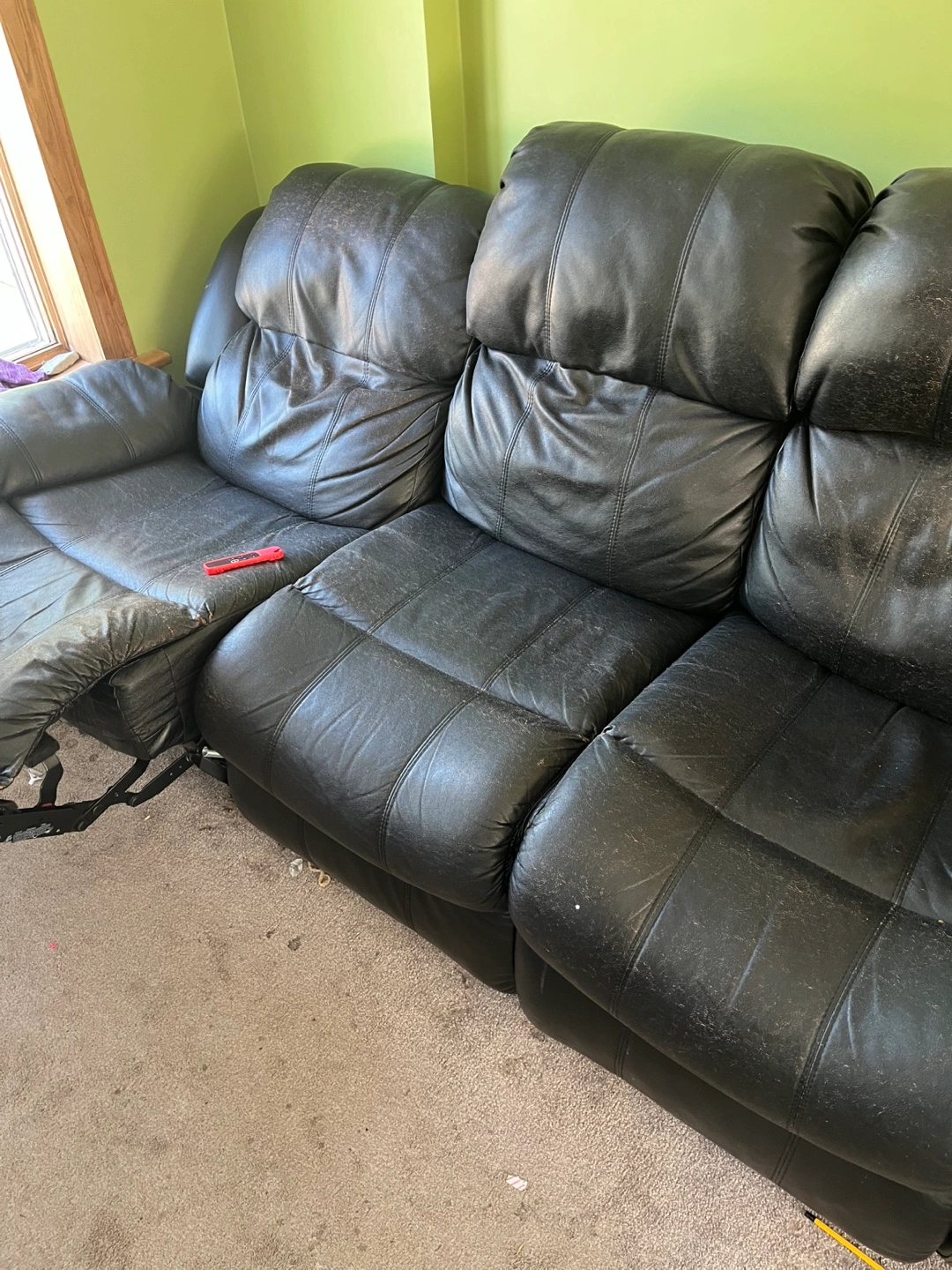 Free couch. One side doesn’t recline any more but might be fixable. Lots of wear, but still comfy. Comes apart, making it easier to get in the house.