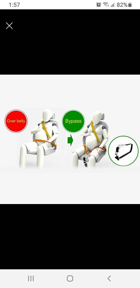 Pregnant belly seat belt adjuster. Keeps the seat belt positioned away from your abdomen. Easy to install and use, designed to reduce impact on seatbelt over abdomen in case of front collision.