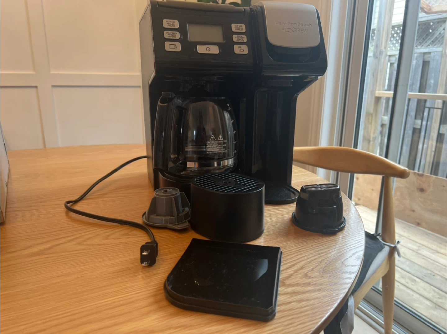 Brew a single cup or a full pot with this Hamilton Beach coffee maker. It includes a carafe and attachments for single-serve brewing. It's perfect for busy mornings or when you want a quick coffee fix. This coffee maker has a digital display and programmable timer.