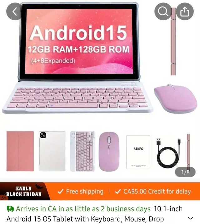 Teclast P30T Android tablet with a 10.1 Inch IPS display (1280x800 resolution). It has a Unisoc T606 Octa-Core Processor, 4GB RAM, and 128GB of storage, expandable via microSD. Features WIFI 6, a 6000mAh battery, a 5MP rear camera, and a 2MP front camera. Comes with a pink keyboard, tablet sleeve, stylus, mouse, and mouse pad. Still works perfectly fine. I used this for school and drawing and it worked great. Cash and cashless payments are accepted. Curbside pickup is available.